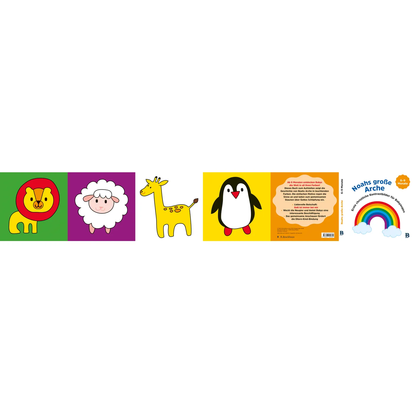 Ab 6 Monaten entdecken Babys die Welt in leuchtenden Farben! "Noahs große Arche" erzählt die beliebte biblische Geschichte in farbenfrohen, einfachen Motiven, die die Sinne anregen und zum Staunen einladen. Die liebevolle Botschaft "Gott ist immer bei mir" vermittelt Geborgenheit und christliche Werte. Das praktische Aufstellbuch weckt die Neugier und bietet interessante Beschäftigung, während das gemeinsame Anschauen die Eltern-Kind-Bindung stärkt. Als erstes christliches Farbbilderbuch für diese Altersgruppe ist es das ideale Geschenk für entdeckungsfreudige Babys!