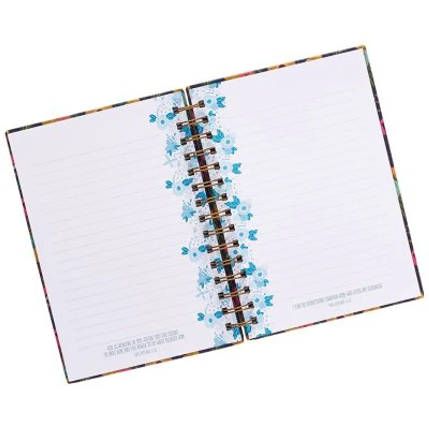 Hochwertiges Notizbuch mit praktischer Spiralbindung. So lassen sich die Seiten besonders leicht blättern und komplett umschlagen. Mit je einem englischen Bibelvers auf jeder linierten Seite. Strapazierfähiger Hardcover-Einband mit Motiv-Druck und -Prägung, teilweise mit Metallfolien-Akzenten. Extra-stabile Bindung mit beschichteter Drahtspirale.