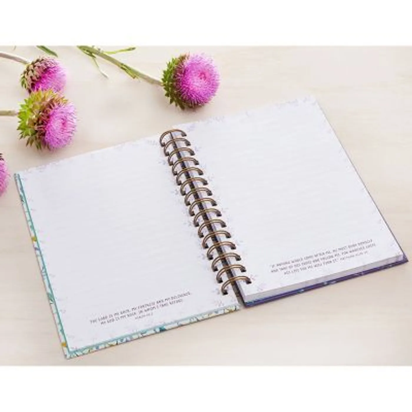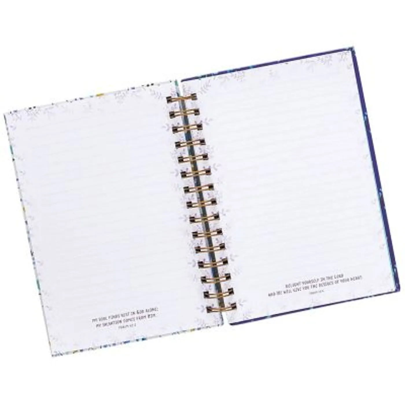 Hochwertiges Notizbuch mit praktischer Spiralbindung. So lassen sich die Seiten besonders leicht blättern und komplett umschlagen. Mit je einem englischen Bibelvers auf jeder linierten Seite. Strapazierfähiger Hardcover-Einband mit Motiv-Druck und -Prägung, teilweise mit Metallfolien-Akzenten. Extra-stabile Bindung mit beschichteter Drahtspirale.