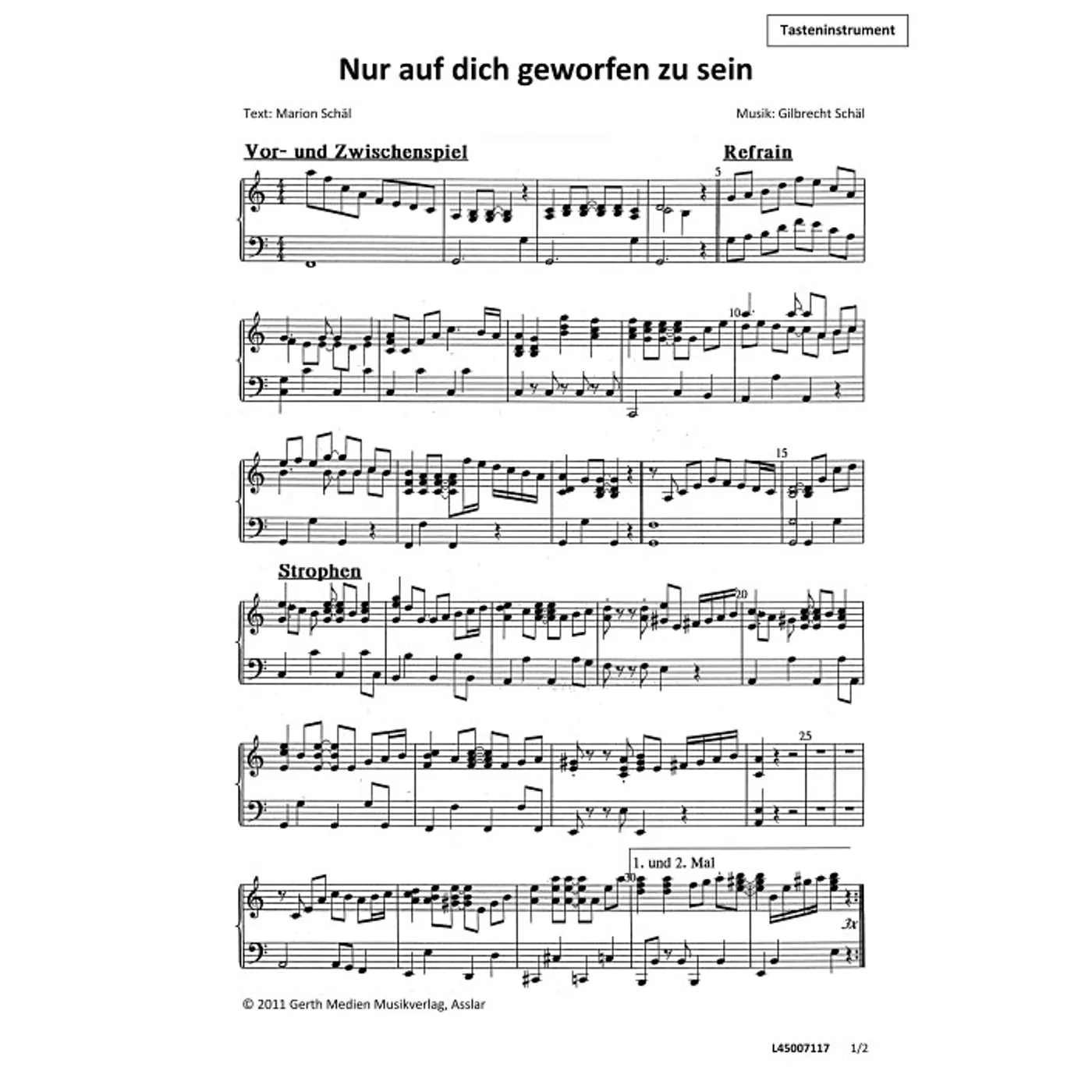 Nur auf dich geworfen zu sein (Klavier) (diese Variante haben Sie gerade ausgewählt) (traditionell, Orchestereinzelstimme) Gilbrecht Schäl (Komposition), Marion Schäl (Text) |