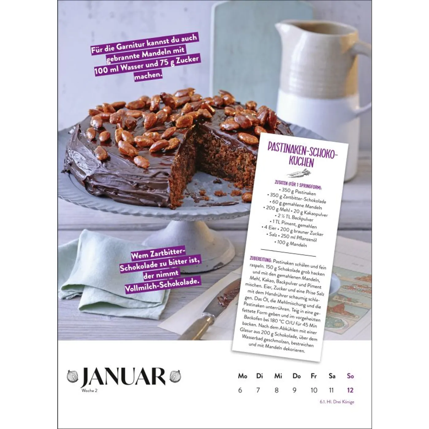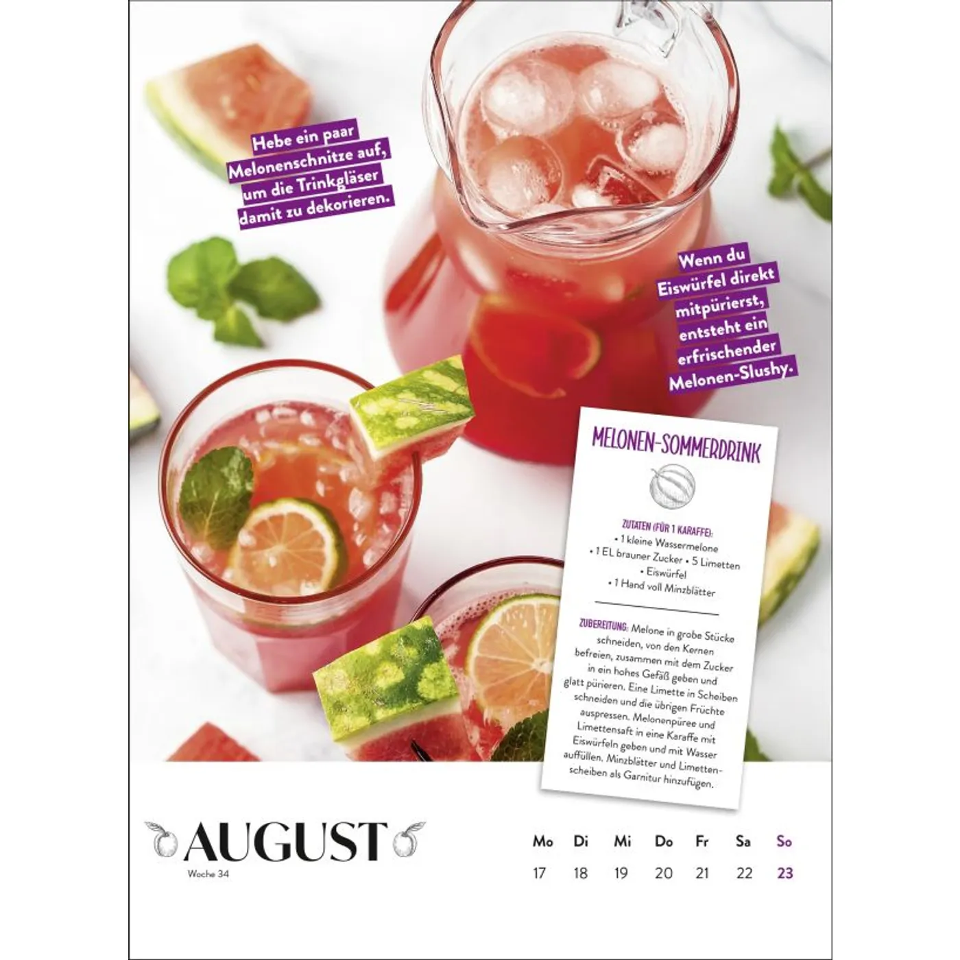 Wolltest du auch schon immer wissen, wann welches heimische Obst und Gemüse Saison hat? Hast du Lust, dich saisonal und somit klimafreundlicher zu ernähren? Dieser Wandkalender Obst und Gemüse haben immer Saison 2026 mit Wochenkalendarium gibt dir Monat für Monat einen Überblick, was du aussäen oder ernten kannst und was es gerade als Lagerware zu kaufen gibt. Du bekommst so eine hilfreiche Unterstützung, um deine Einkaufsliste und deinen Ernährungsplan regional und erntefrisch zu gestalten. Jede Woche schenken dir neue Rezepte wie Pastinaken-Schoko-Kuchen, Erdbeer-Fenchel-Salat, Melonen-Sommerdrink oder Süß-sauer Eingelegtes Inspiration für eine abwechslungsreiche, vegetarische Küche zu Hause. Viele Tipps verraten dir außerdem clevere Tricks fürs Kochen und geben dir noch mehr Wissen zu einzelnen Obst- und Gemüsesorten.