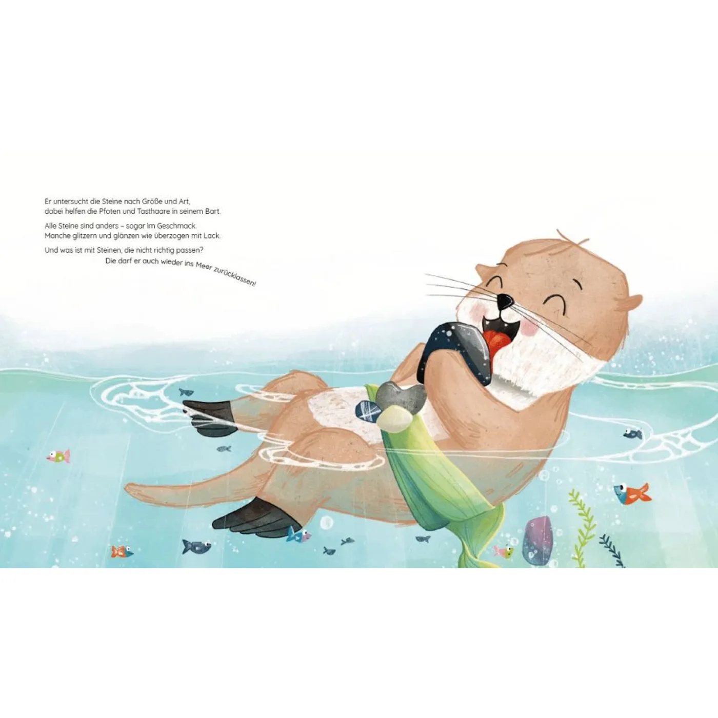 Steine sind so praktisch, findet Otis. Mit ihnen kann man Muscheln knacken und jonglieren. Zu ärgerlich, dass er selbst noch zu klein ist und nicht tauchen kann. Wie soll er sich denn da seinen ganz eigenen Stein suchen? Und selbst wenn er es könnte … Welcher ist der Beste? Für welchen Stein soll sich Otis entscheiden?