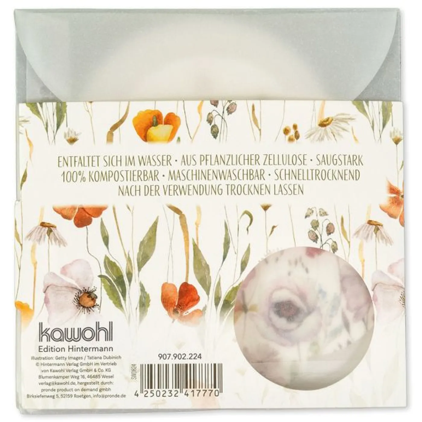 Hübscher Schwamm mit Wow-Effekt! Das dünne Material entfaltet sich bei der ersten Benutzung im Wasser. Es besteht aus rein pflanzlicher Zellulose, ist saugstark und zu 100% kompostierbar.