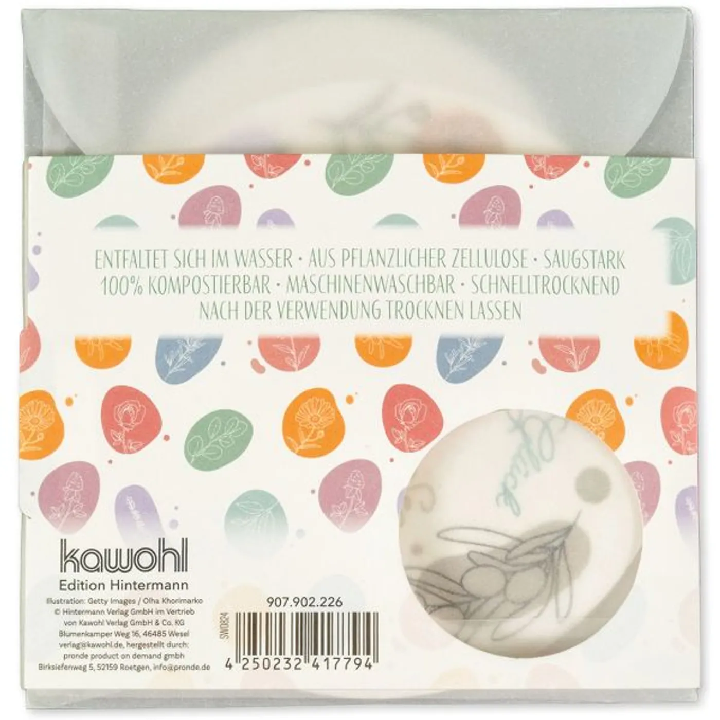 Hübscher Schwamm mit Wow-Effekt! Das dünne Material entfaltet sich bei der ersten Benutzung im Wasser. Es besteht aus rein pflanzlicher Zellulose, ist saugstark und zu 100% kompostierbar.
