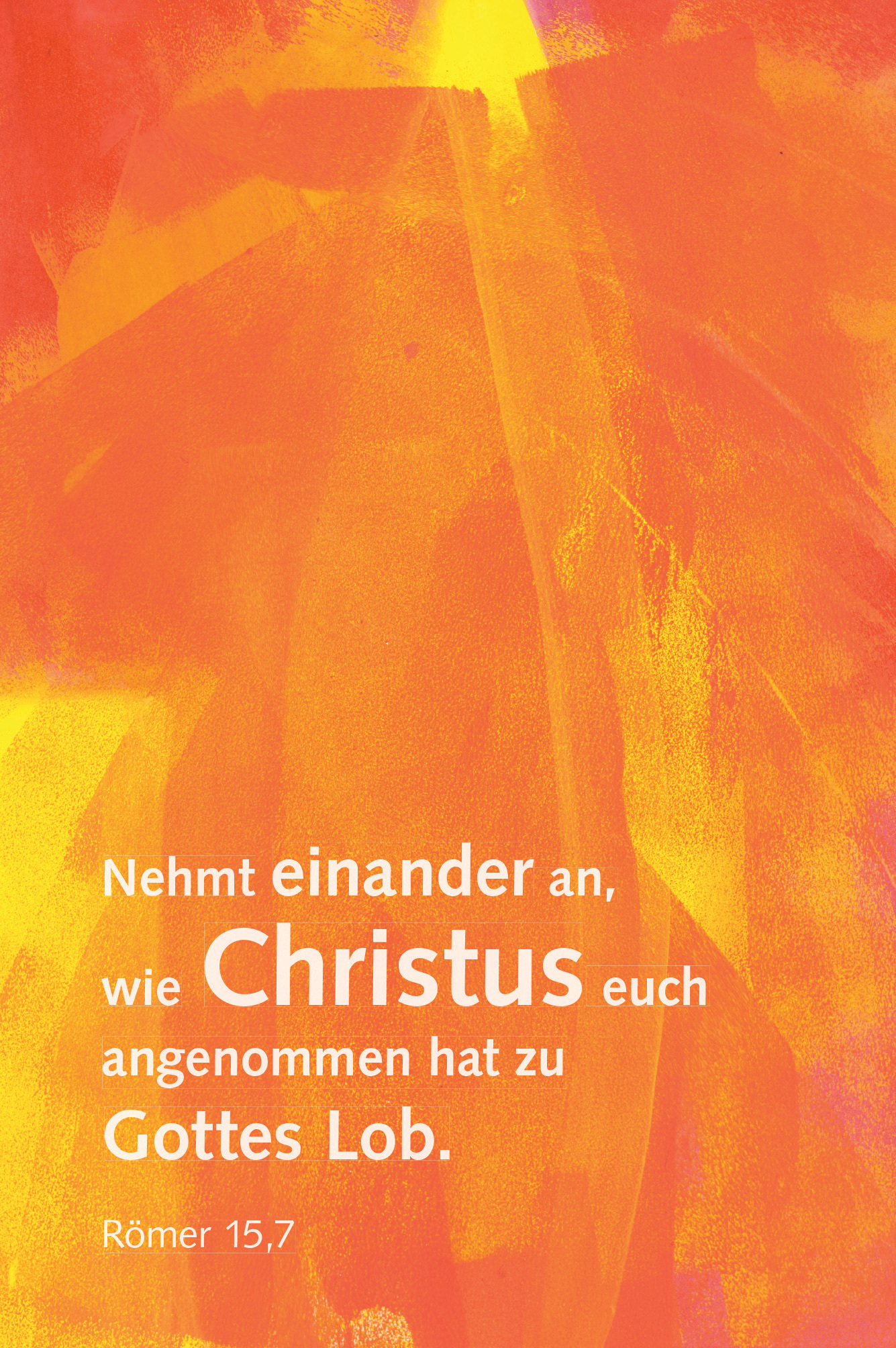 Nehmt einander an, wie Christus euch angenommen hat zu Gottes Lob. Römer 15,7