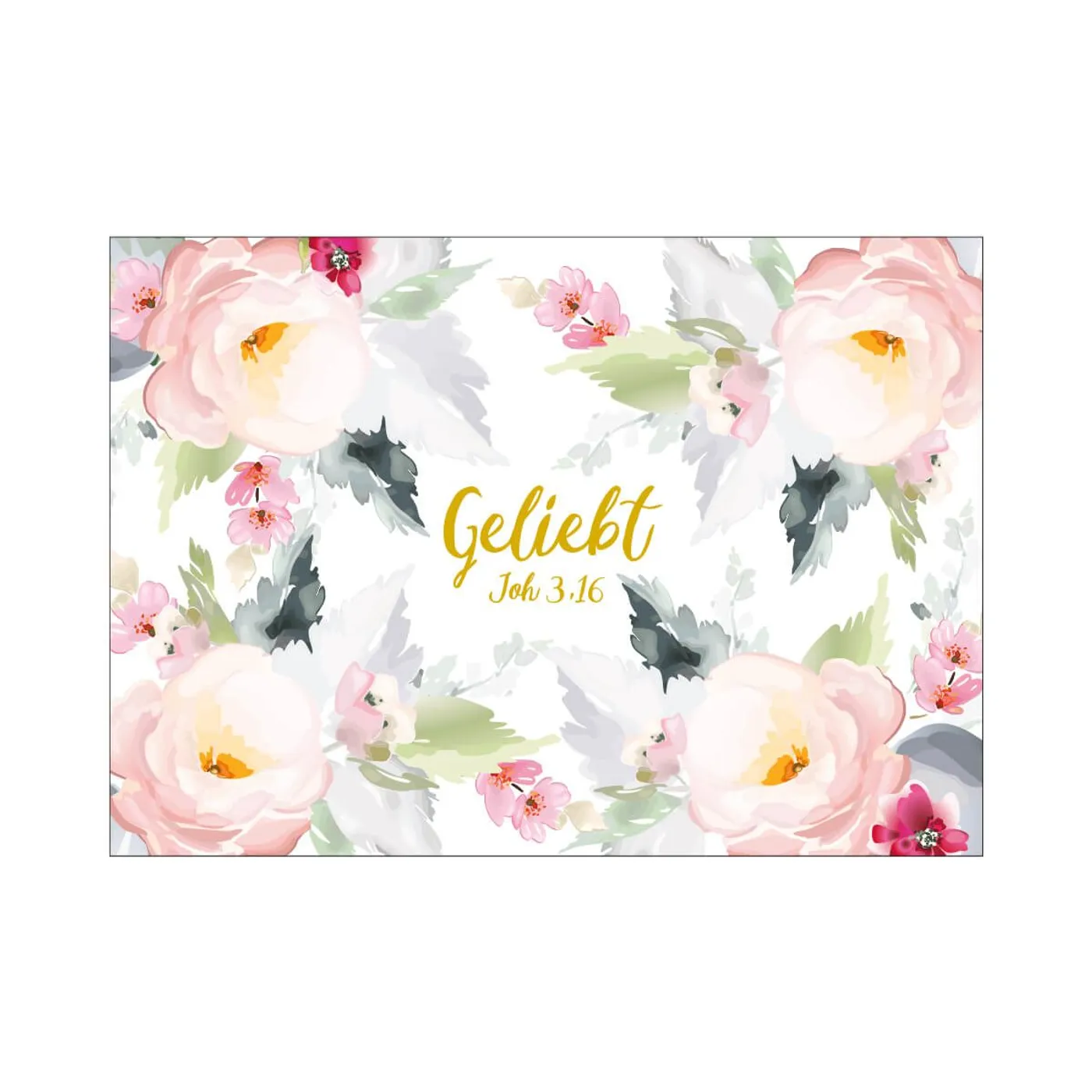 Edles Blumen-Design auf einer Postkarte mit Spruch: Geliebt.