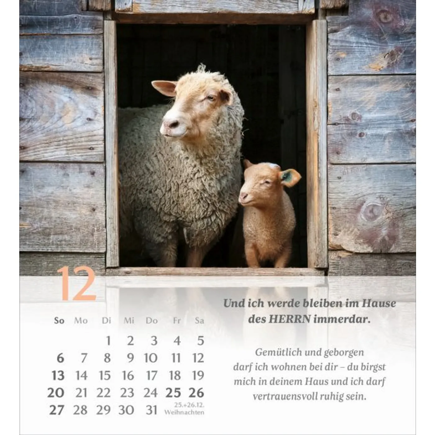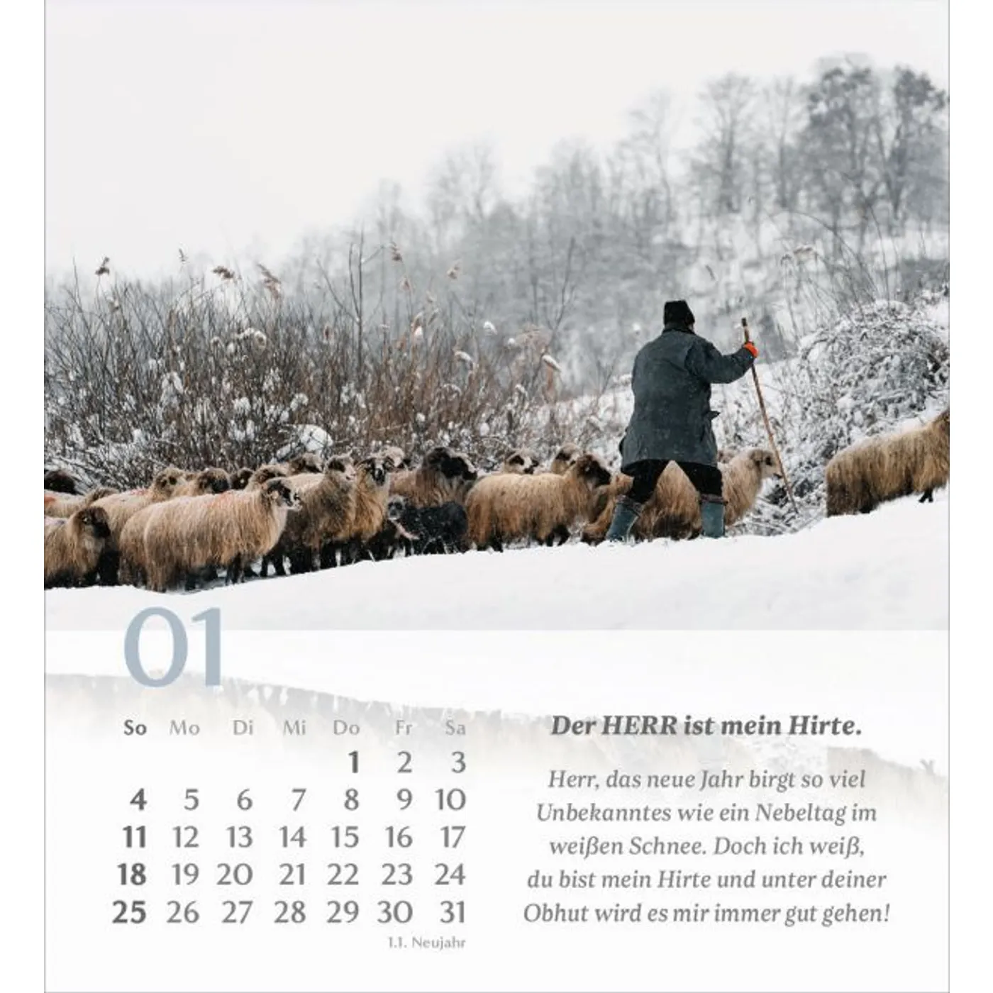 Tauche ein in die beruhigende Botschaft von Psalm 23 mit unserem Tischkalender, der perfekt zum Verteilen geeignet ist. Jeder Monat dieses liebevoll gestalteten Kalenders widmet sich einem Vers dieses zeitlosen Psalms von König David und wird von abwechslungsreichen, symbolischen Bildern begleitet, die die tiefen Gedanken und Gefühle des Textes lebendig werden lassen.
