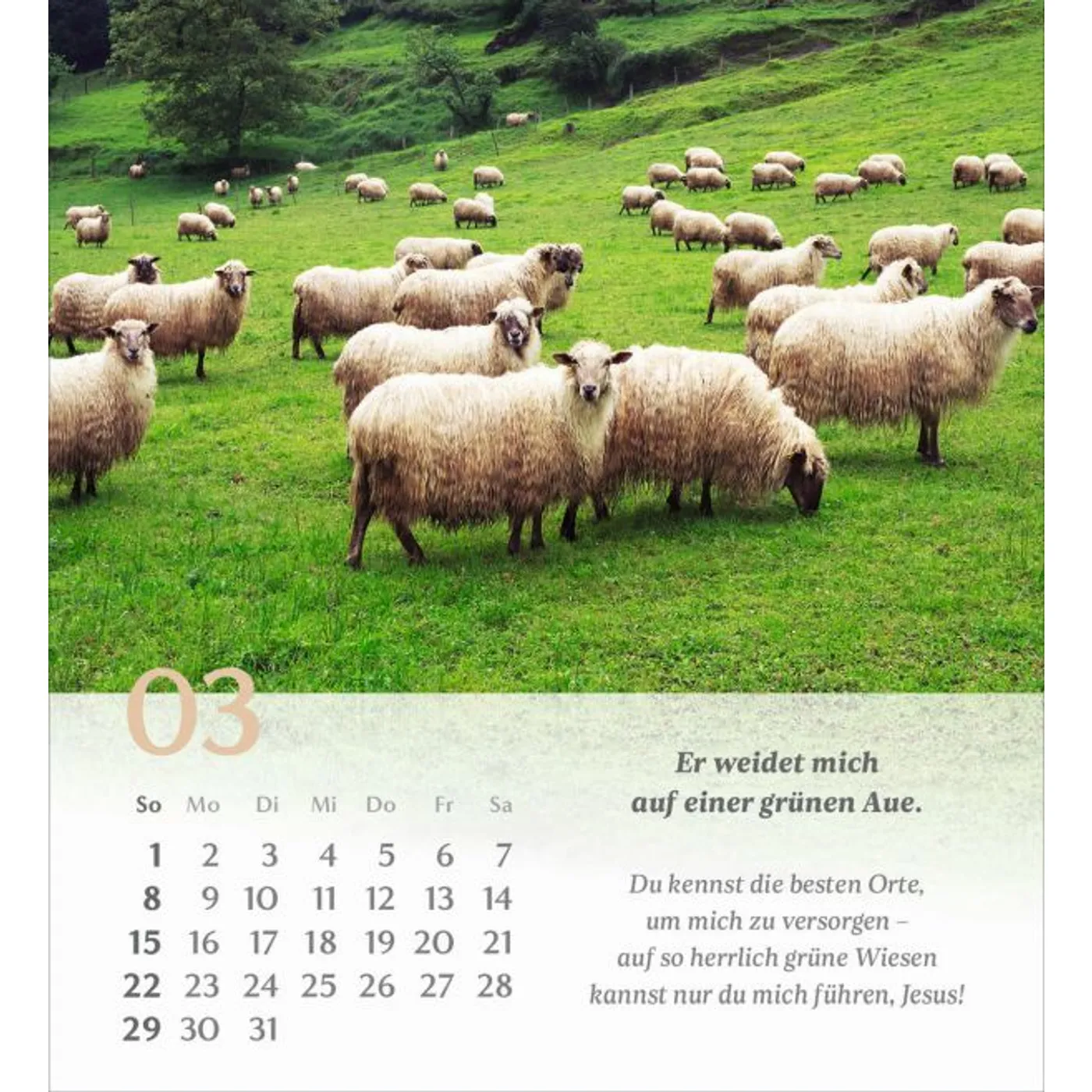 Dieser Tischkalender eignet sich nicht nur für Dich selbst, sondern ist auch ein wunderbares Geschenk, um anderen die ermutigenden Gedanken aus Psalm 23 näherzubringen. Außerdem ist dieser Kalender auch als Wandkalender erhältlich, sodass Du die inspirierenden Verse und Bilder noch prominenter in Deinem Zuhause präsentieren kannst. Lass Dich von der Kraft dieser Worte inspirieren und teile die Freude und Hoffnung, die sie vermitteln.