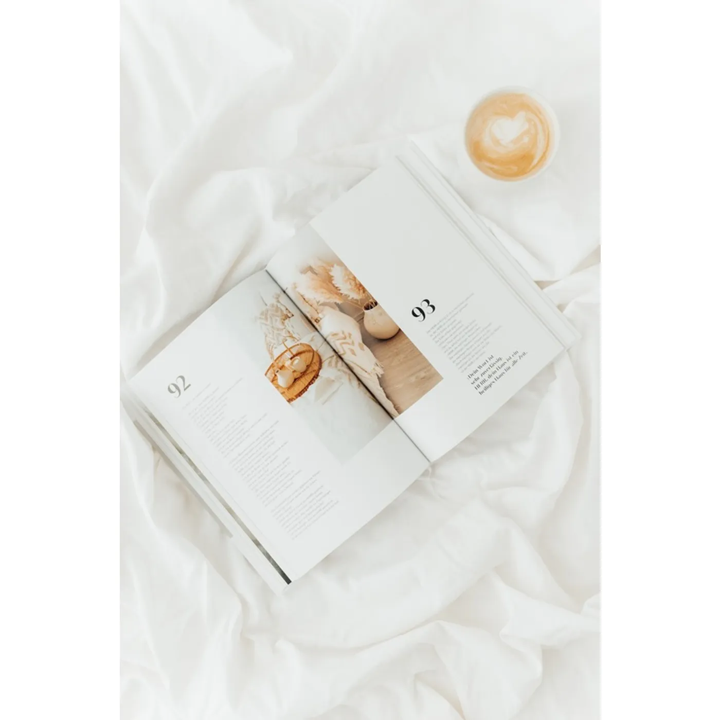 Die Fotografien haben Lifestyle/Ästhetik-Motive wie Blumen, Planzen, Natur, Frauen und Inneneinrichtung und sind manchmal groß manchmal klein in vielen hellen Farben, vermehrt beige- und creme-Töne. Alles sehr clean. Immer wieder sind bestimmte Psalmteile durch große Schrift mit einem anderen Schrifttyp hervorgehoben. Hierbei handelt es sich um Verse, die das Autorinnenteam bewegt haben. Die generelle Schrift ist schlicht, ohne Serifen, angenehm zu lesen, aber auch relativ klein (ich kann es gut lesen, aber wenn man nicht mehr so gut sehen kann, ist es wahrscheinlich eher nichts). Mir gefällt das Layout, das auch viel weiße Freiräume auf den Seiten lässt und dadurch entspannend wirkt.