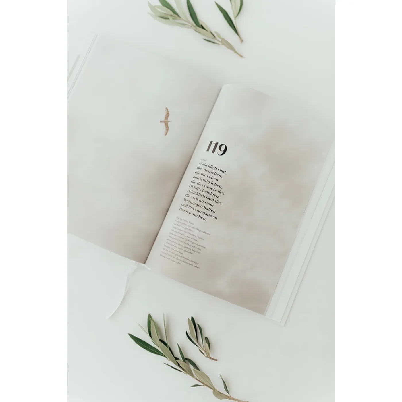 Das vorliegende Coffee Table Book ist wunderschön und ästhetisch gestaltet. Es enthält alle Psalmen, die mit filigranen Fotos abgedruckt sind und ein herrliches Bild abgeben.