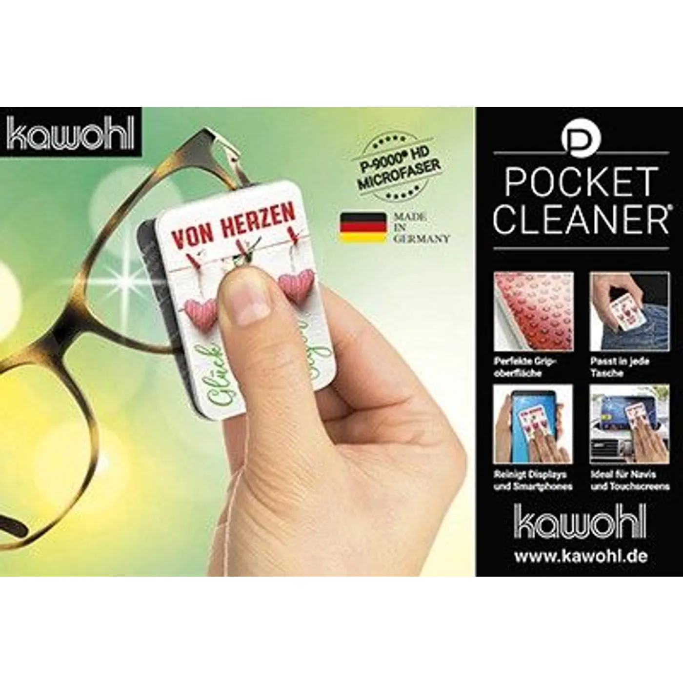 Ein Must-Have für alle, die auch unterwegs schnell mal die Brille oder das Display reinigen müssen. Das angenehm weiche Pad liegt rutschfest in der Hand und entfernt zuverlässig Verschmutzungen wie Fingerabdrücke oder Schlieren. Pocket Cleaner mit Antirutsch-Beschichtung für optimalen Grip, im handlichen und stabilen Case mit Griffmulde.