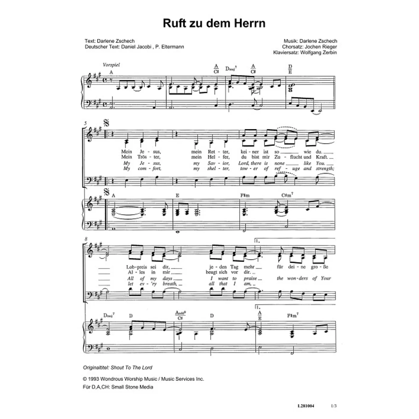 (modern, Klavier, dreistimmig, gemischter Chor, mit Akkorden, A-Dur) Darlene Zschech (Komposition, Text), Jochen Rieger (Chorsatz), Peter Eltermann (Übersetzung), Daniel Jacobi (Übersetzung), Wolfgang Zerbin (Klaviersatz)