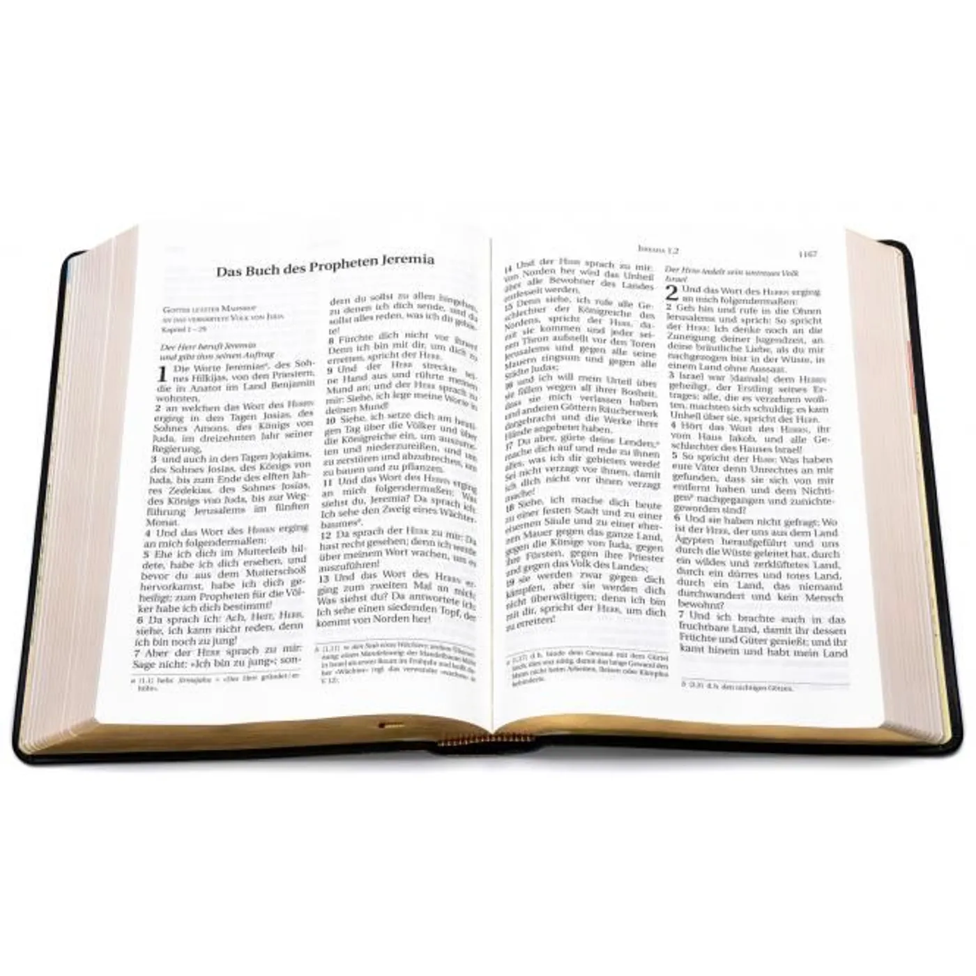 Die Bibel ist sehr hochwertig verarbeitet, der Großdruck ist fantastisch, ich bin sehr begeistert. Eine absolut wunderschöne Bibel, die ihr Geld wert ist.