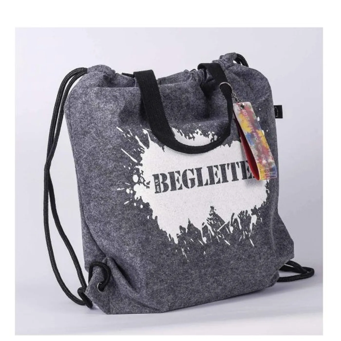 Für Schule, auf Reisen, für Schuhe und den Sport und vieles mehr lässt sich der umweltfreundliche Filz-Rucksack aus RPET-Filz-Polyester benutzen.