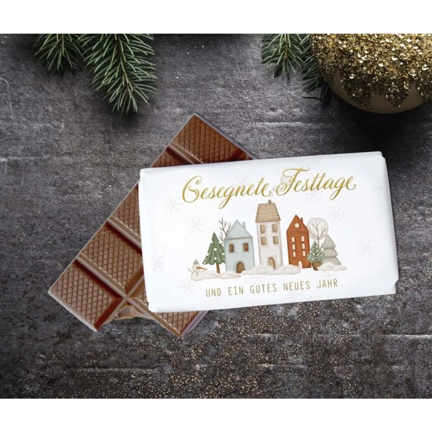 Die feinste Edelvollmilchschokolade bietet einen unvergleichlichen Genuss und ist ideal, um deinen Liebsten eine Freude zu bereiten. Ob als kleines Mitbringsel oder als liebevolles Geschenk unter dem Weihnachtsbaum – diese Schokolade bringt festliche Stimmung und herzliche Grüße in jedes Zuhause. Wünsche deinen Liebsten gesegnete Festtage und ein gutes neues Jahr mit dieser besonderen Schokolade.