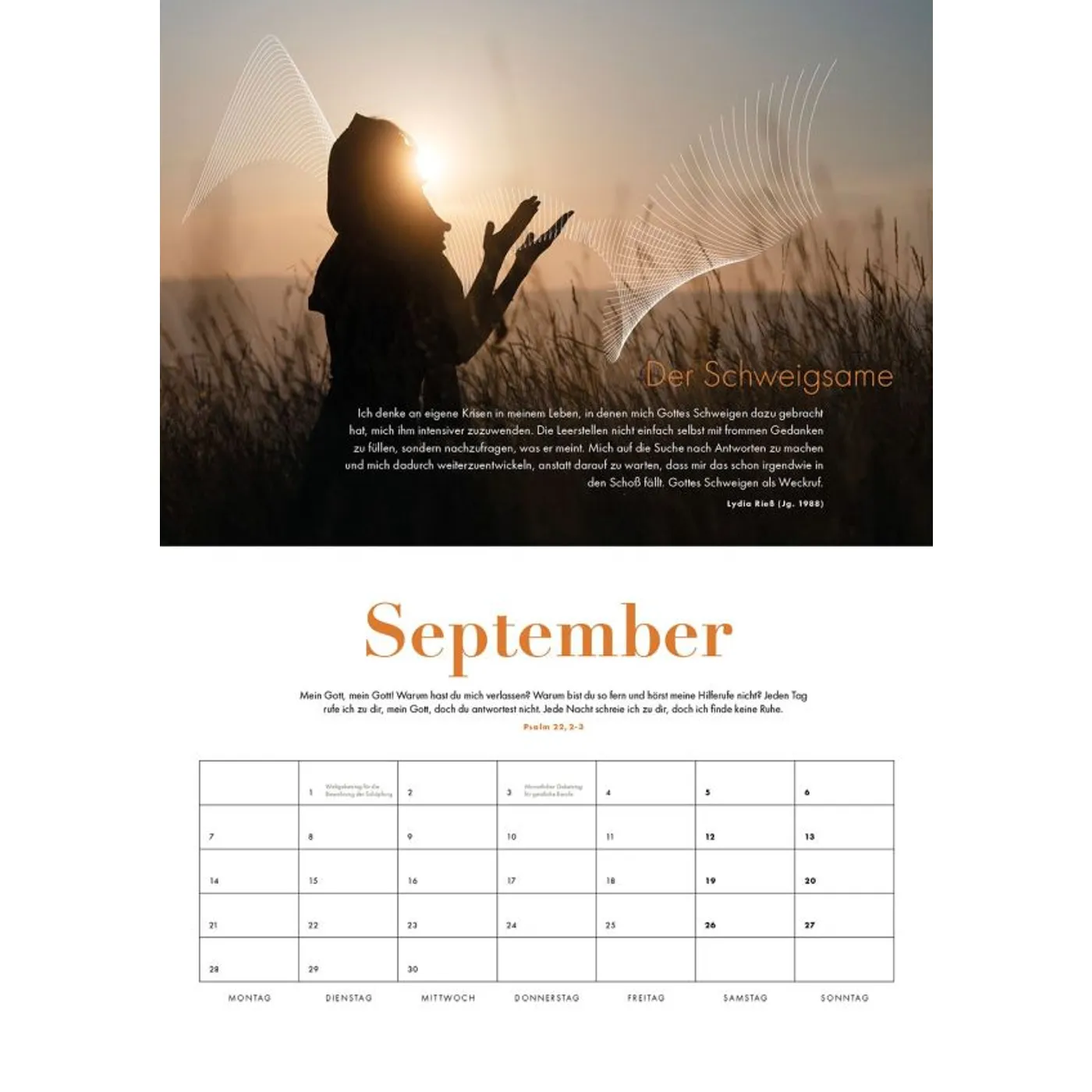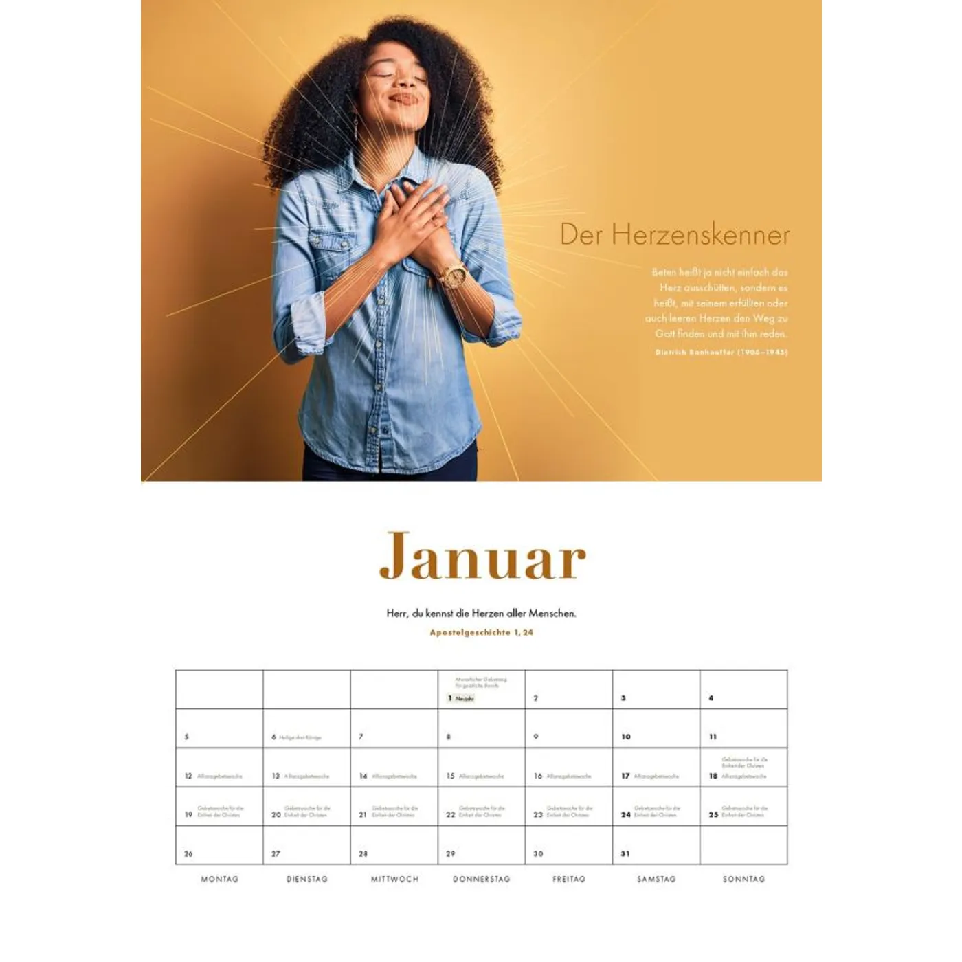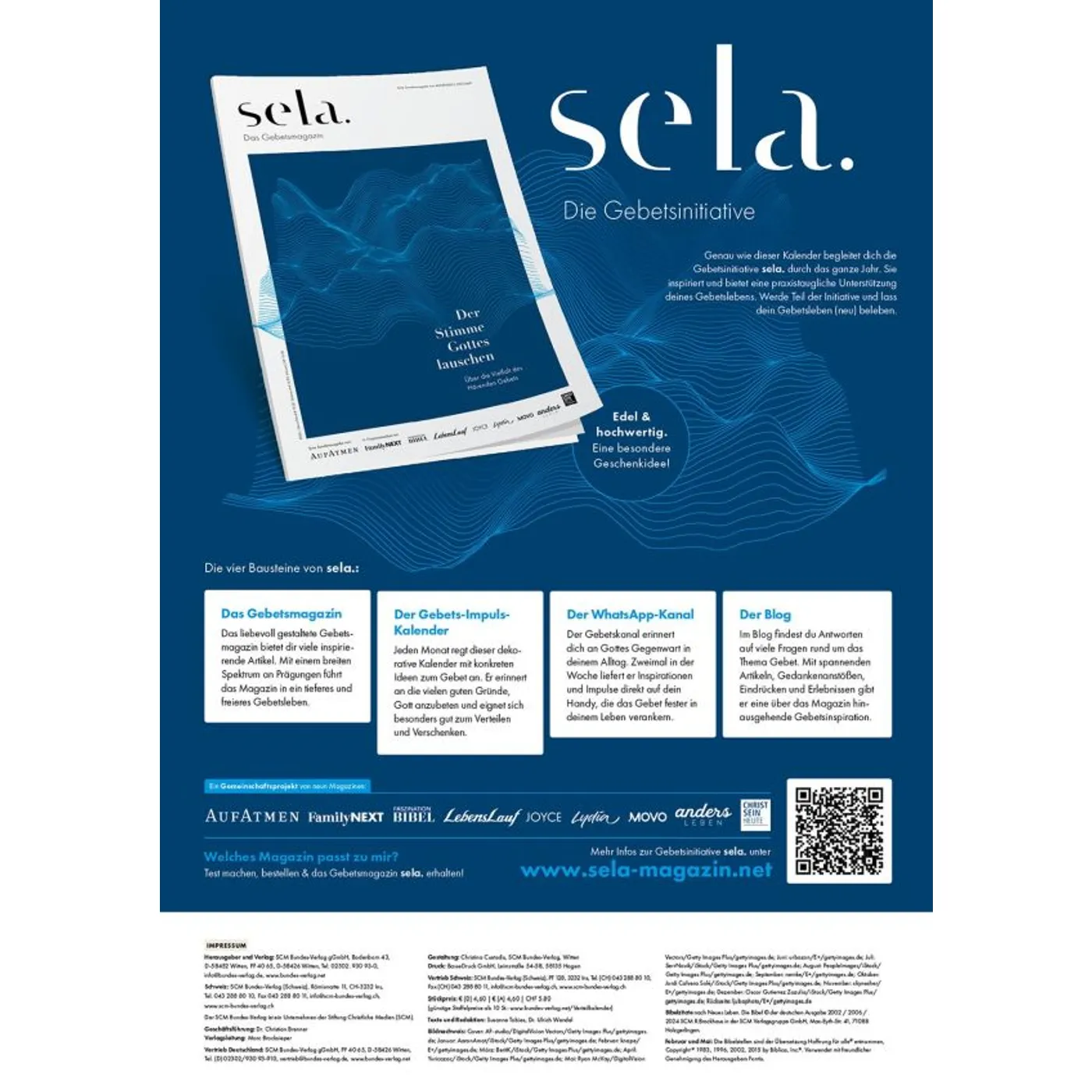 Der Sela Verteilkalender 2026 ist nicht nur ein optisches Highlight mit seinem stylishen Design, sondern auch eine wertvolle Unterstützung für das Gebetsleben. Jeder Monat bereichert das Gebet durch einen Vorschlag für eine besondere Gebetsart. Im Gebetskalender sind Gründe, um Gott anzubeten, außerdem passende Bibelworte und überregionale Gebetstage enthalten.