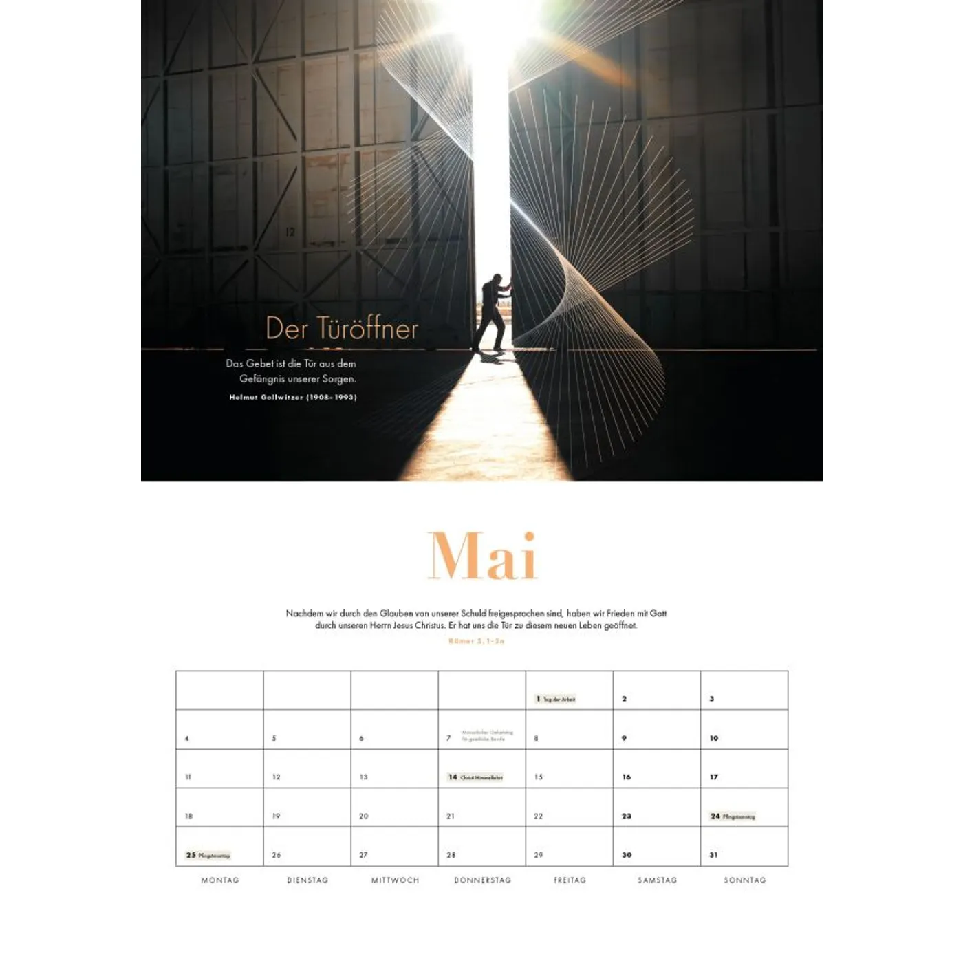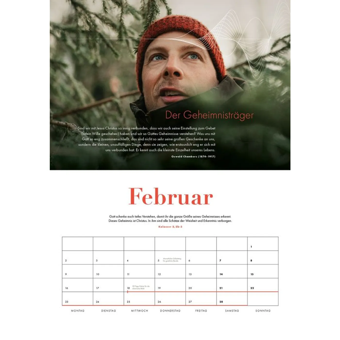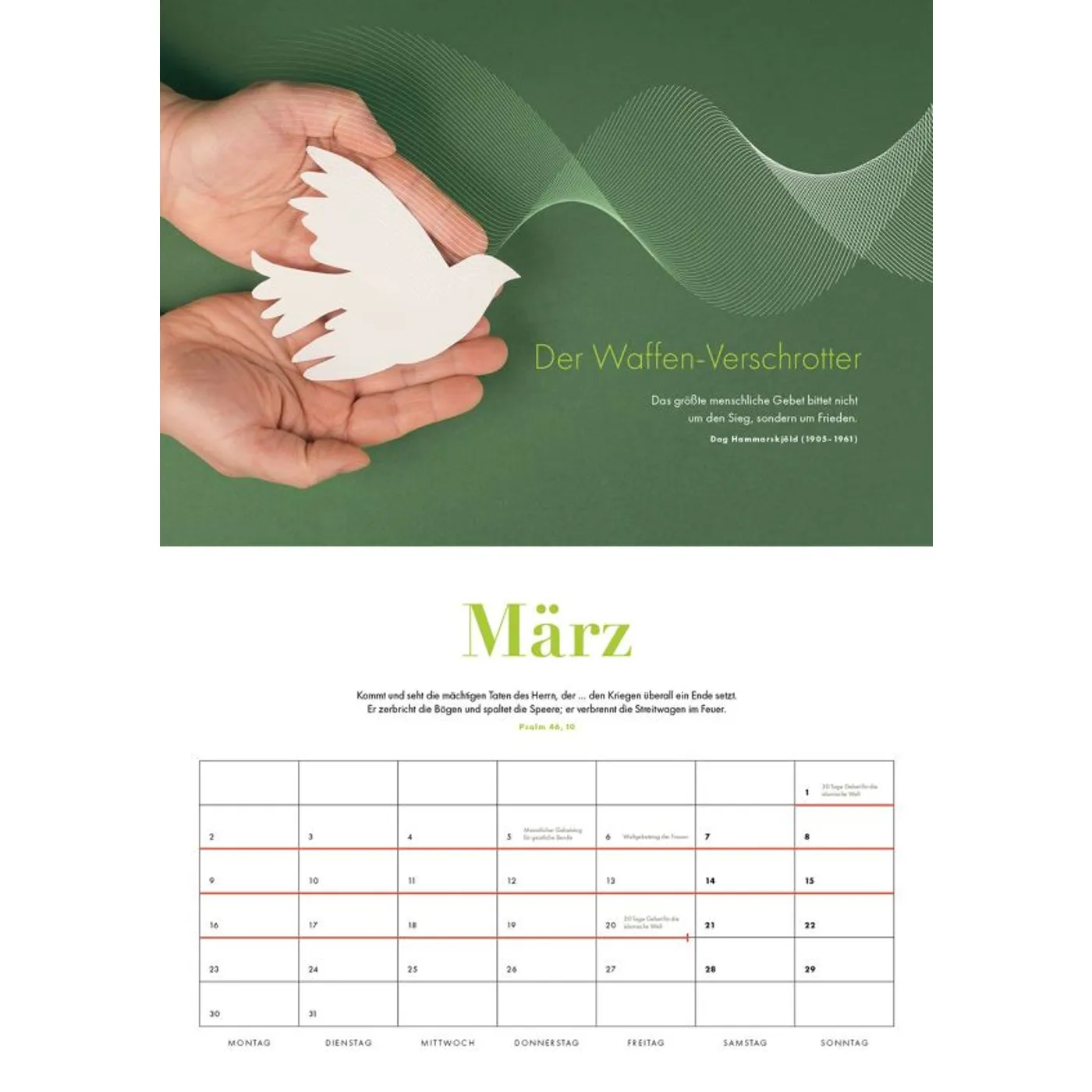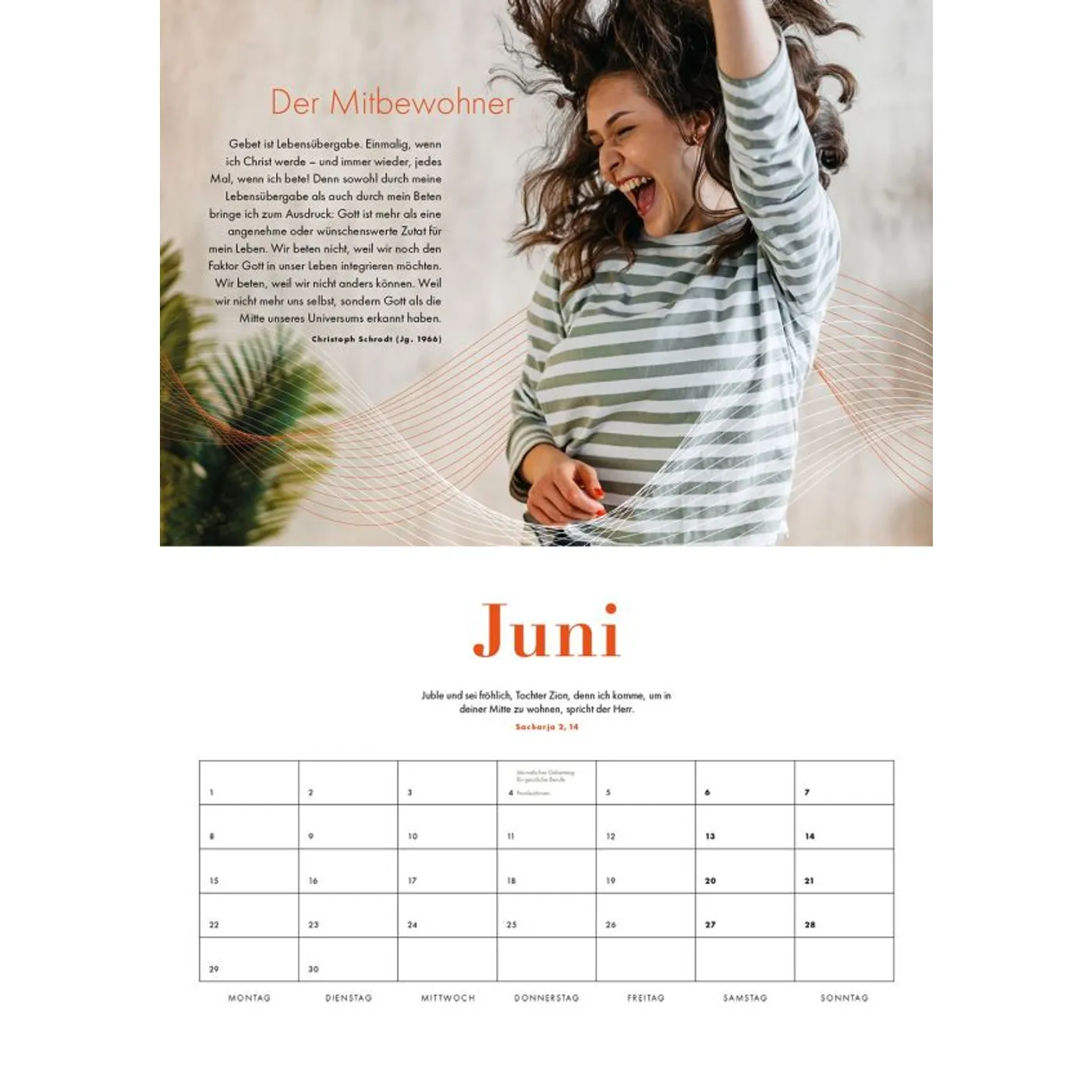 Der Sela Verteilkalender 2026 ist nicht nur ein optisches Highlight mit seinem stylishen Design, sondern auch eine wertvolle Unterstützung für das Gebetsleben. Jeder Monat bereichert das Gebet durch einen Vorschlag für eine besondere Gebetsart. Im Gebetskalender sind Gründe, um Gott anzubeten, außerdem passende Bibelworte und überregionale Gebetstage enthalten.