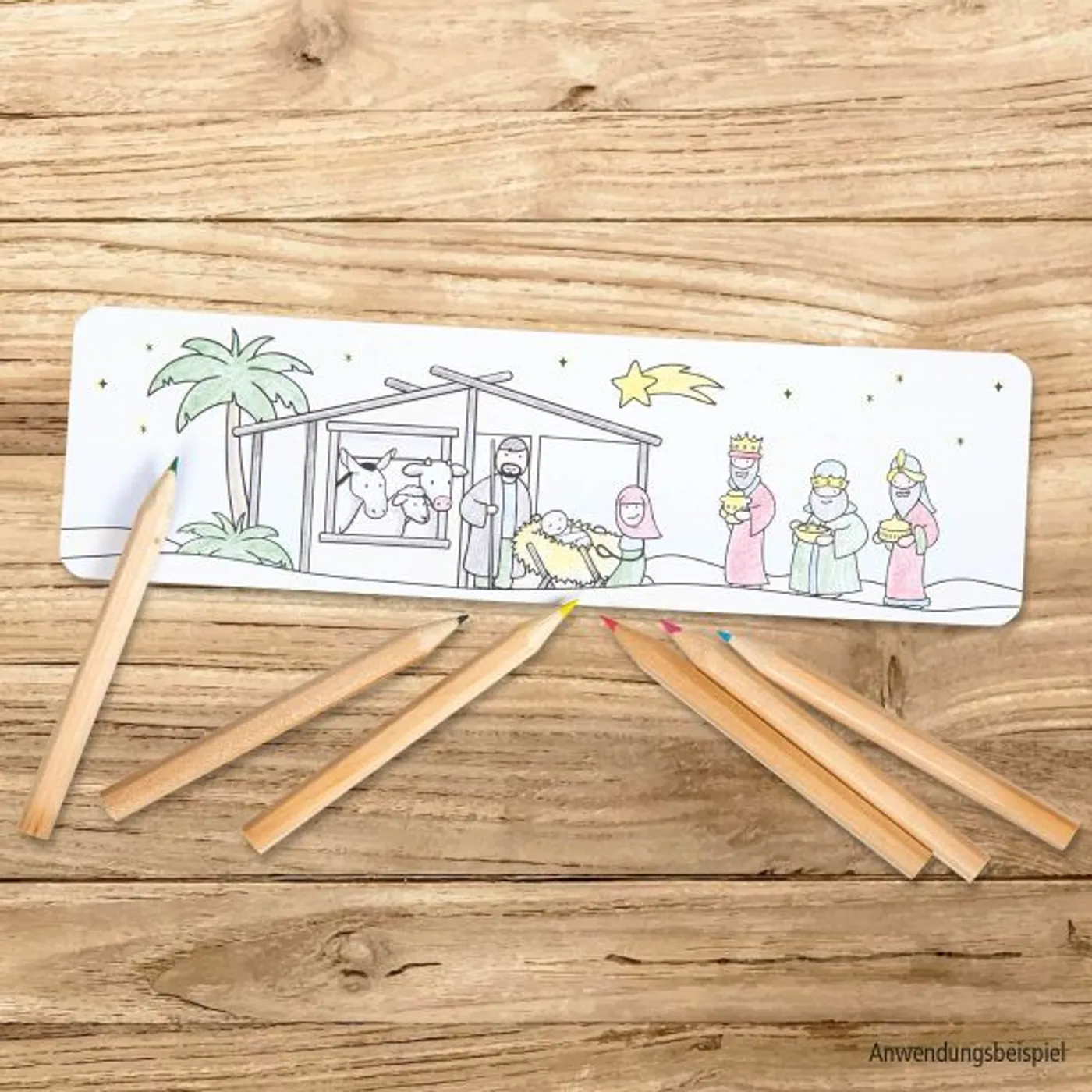Set: Lesezeichen "Krippe" u. Buntstifte