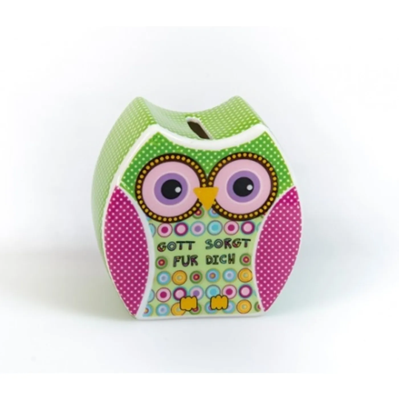 Niedliche Spardose „Eule“, mit Text: „Gott sorgt für dich“