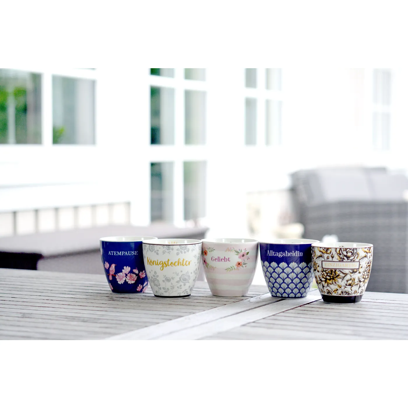 Wunderschöne Tassen ohne Henkel. Meine "Geliebt" Tasse habe ich zu Weihnachten geschenkt bekommen. Für mich nur für Tee!