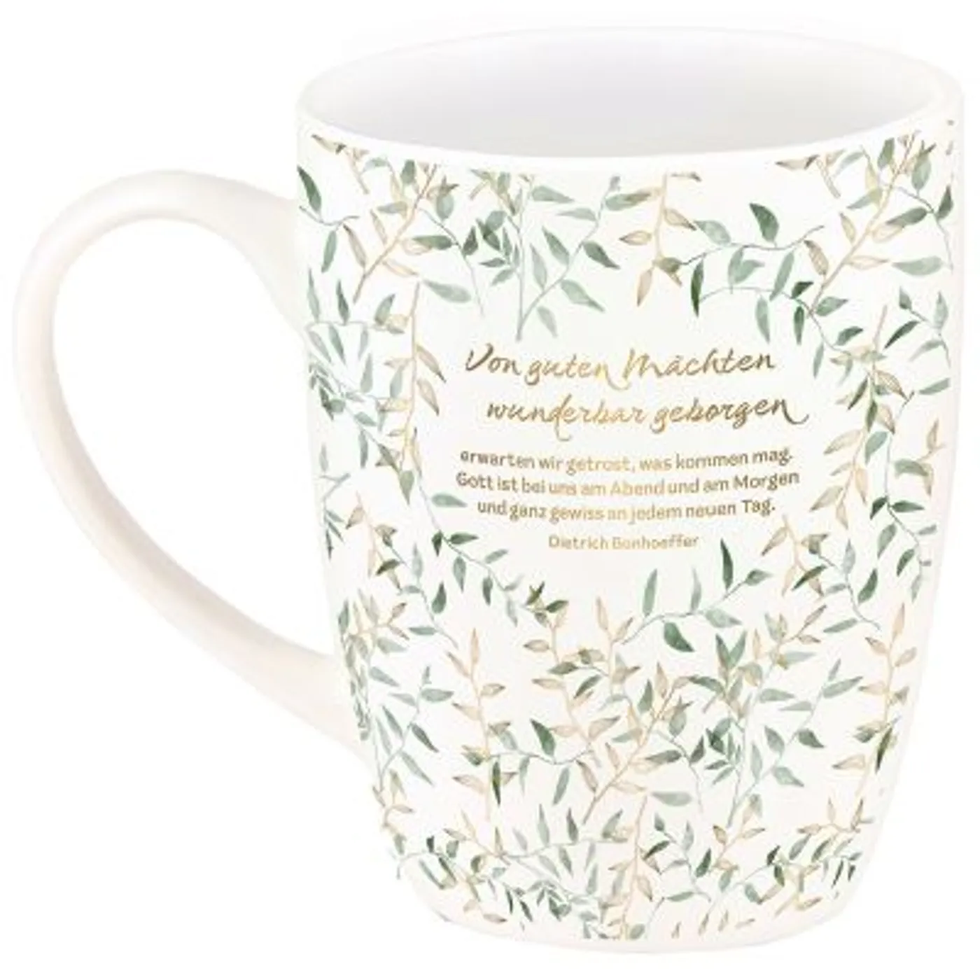 Die Tasse sieht nicht so aus wie auf dem Bild oder auf der Verpackung der Tasse. Der Aufdruck auf der Tasse wirkt minderwertig. Die Farben sind nicht ansatzweise so wie auf den Bildern. Das grün ist in ein quietschiges türkis. Die vermeintlich goldene Schrift ist eher Silber. Eine (kostenlose) retoure ist leider auch nicht möglich.