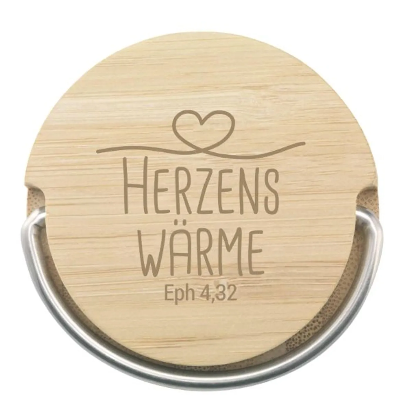 Die darf in der Herzenswärme-Serie nicht fehlen: Die doppelwandige, vakuumisolierte Thermoflasche aus Edelstahl mit Bambus-Verkleidung und praktischem Tragering. Inklusive herausnehmbarem Teesieb aus Edelstahl. Graviert mit „Herzenswärme Eph 4,32“ auf dem Deckel.