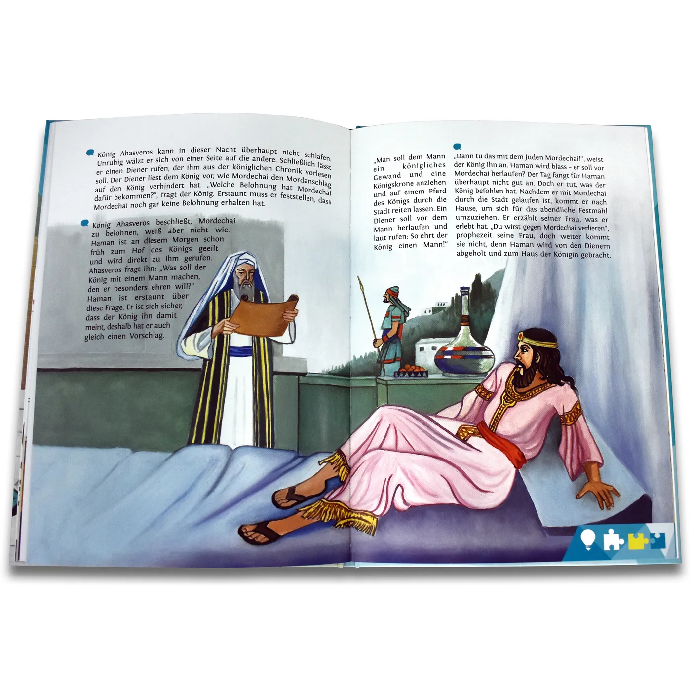 Das Waisenmädchen Esther lebt als Ausländerin in Babylon, als der König einen Schönheitswettbewerb unter allen jungen Mädchen veranstaltet. Esther macht mit, denn es gibt eine sehr große Belohnung für die Siegerin ... Finde heraus, was Esther am Königshof erlebt.