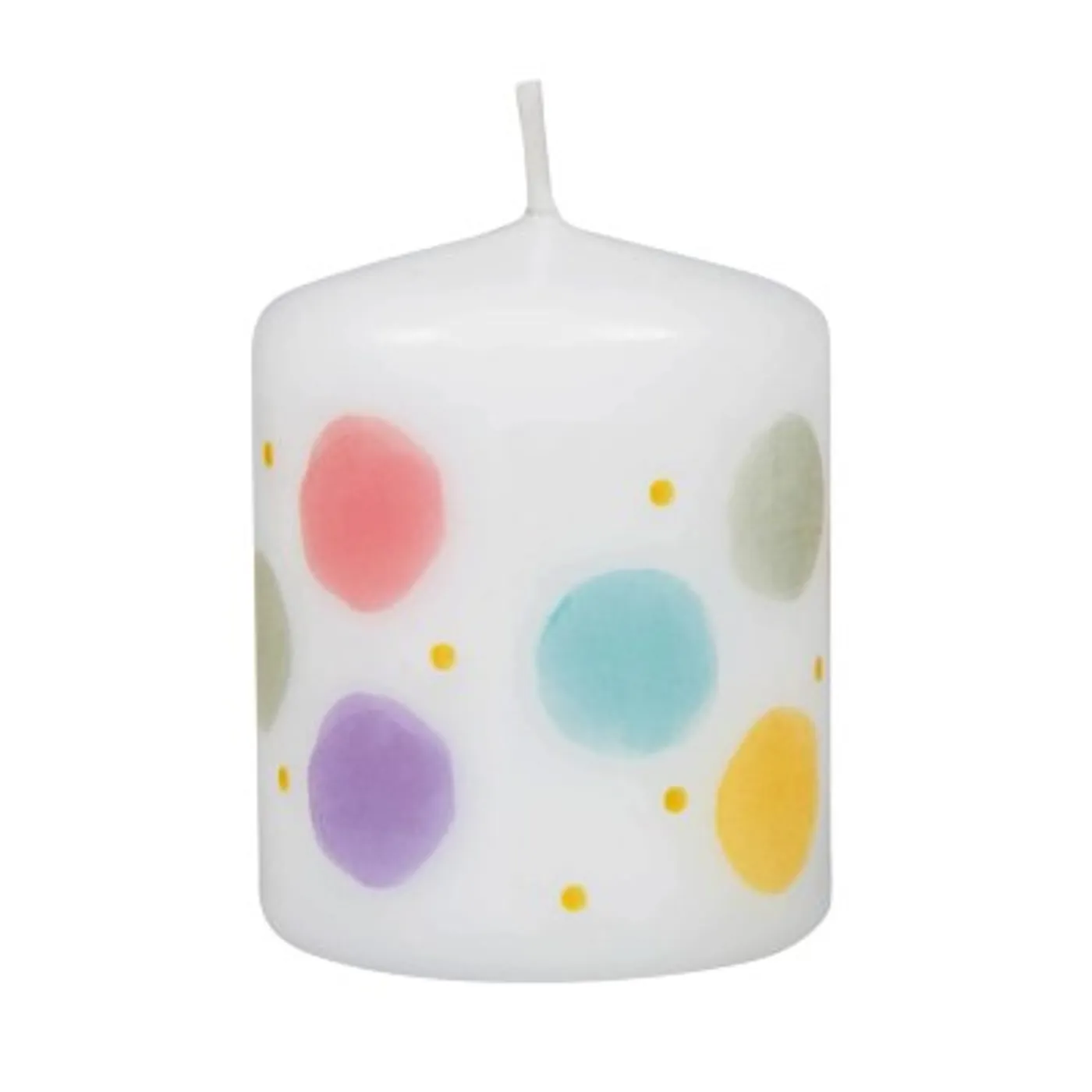 Hübsche kleine Tischkerze mit Punkte Motiv und Spruch