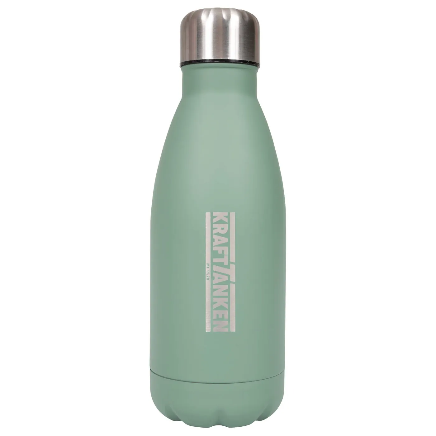 Einwandige Wasserflasche aus Edelstahl mit matter Oberfläche in drei edlen Retrofarben, lasergraviert mit „KRAFT TANKEN Mt 11,28“. Hält kalte Getränke längere Zeit kalt. Bitte von Hand spülen. Höhe 22 cm, Füllmenge 0,5 ltr., tropfsicher, mit auslaufsicherem Schraubverschluss, in Einzelverpackung.