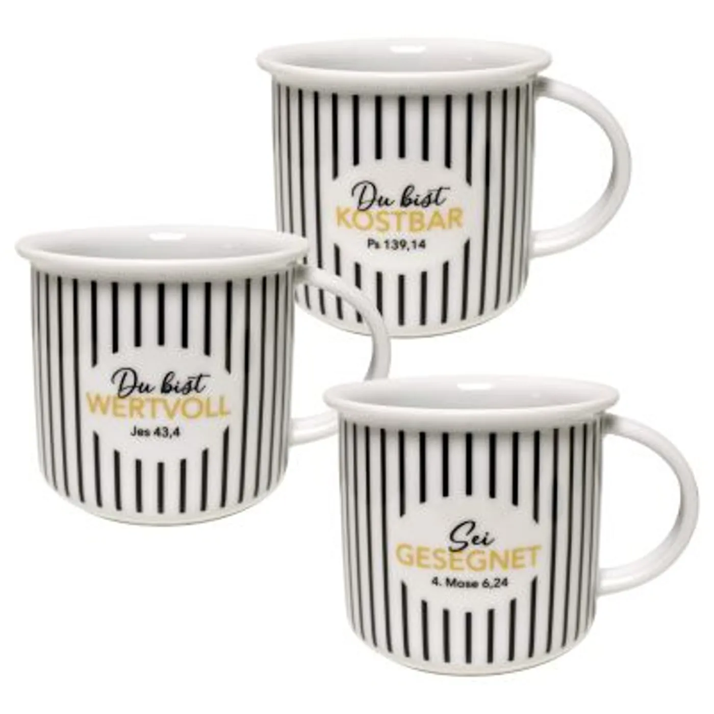 Unsere neue Lieblingstasse im Retrodesign: Wunderschöne Porzellantasse, mit Vers „Du bist KOSTBAR Ps 139,14“ auf beiden Seiten, zum Verschenken oder Selbstbehalten. Liebevoll grafisch umgesetzt (Volldekor) mit schwarzer und goldfarbener Schrift (Effektpigment-Gold).