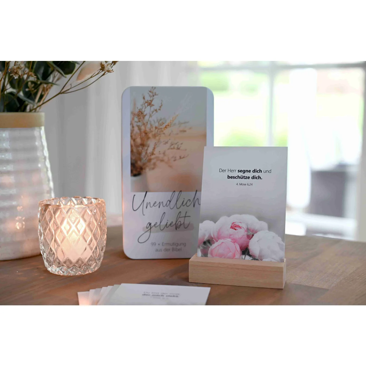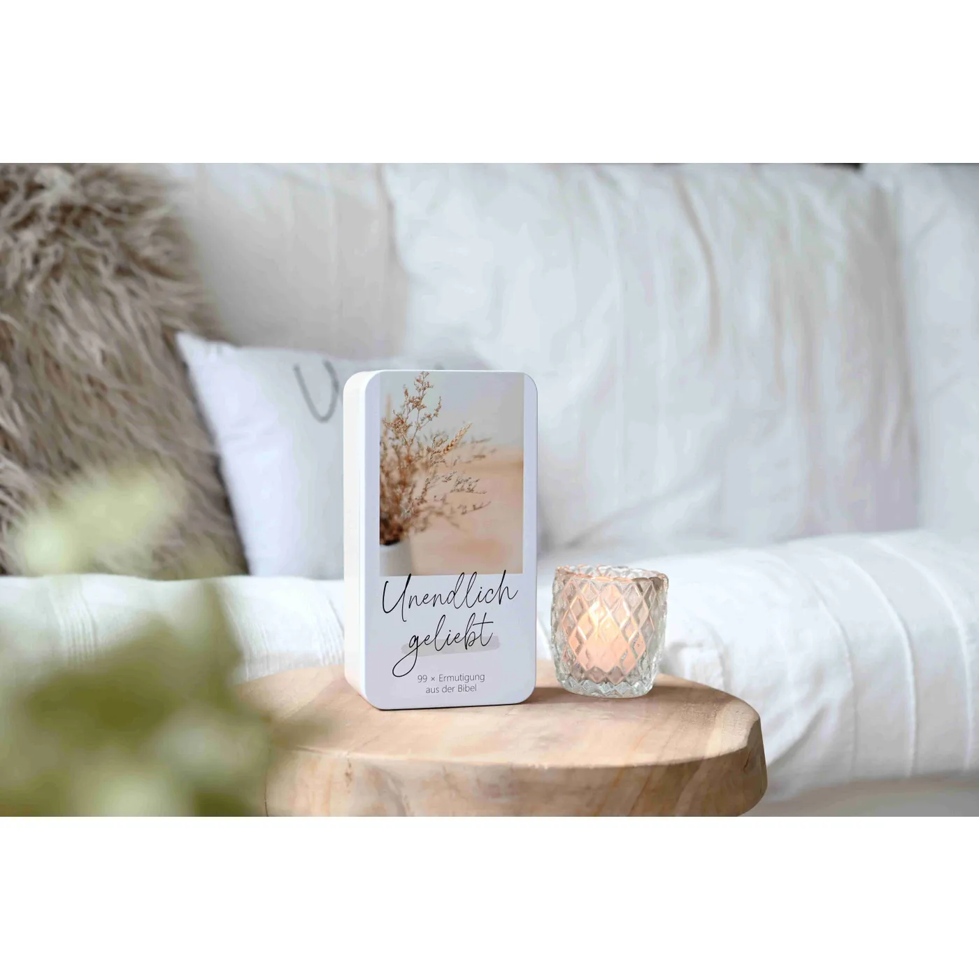 Neu im GerthMedien Verlag erschienen ist diese Blechdose „Unendlich geliebt – 99 x Ermutigung aus der Bibel“.