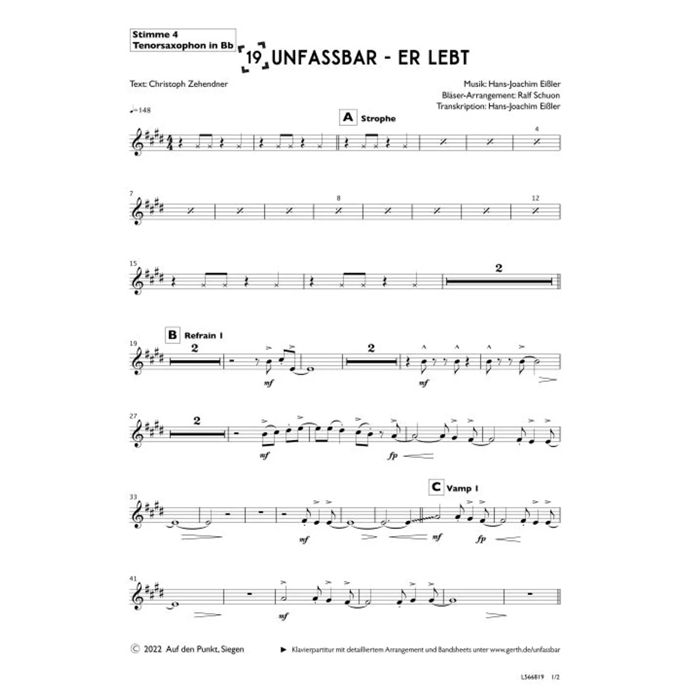 Unfassbar / Er lebt | Gemeindelied, gemischter Chor | Hans-Joachim Eißler (Prod.), Steffi Neumann (Gesang.), Ralf Schuon (Prod.), Unfassbar-Ensemble (Gesang.), Uli Weible (Gesang.), ... | 0,99 € |