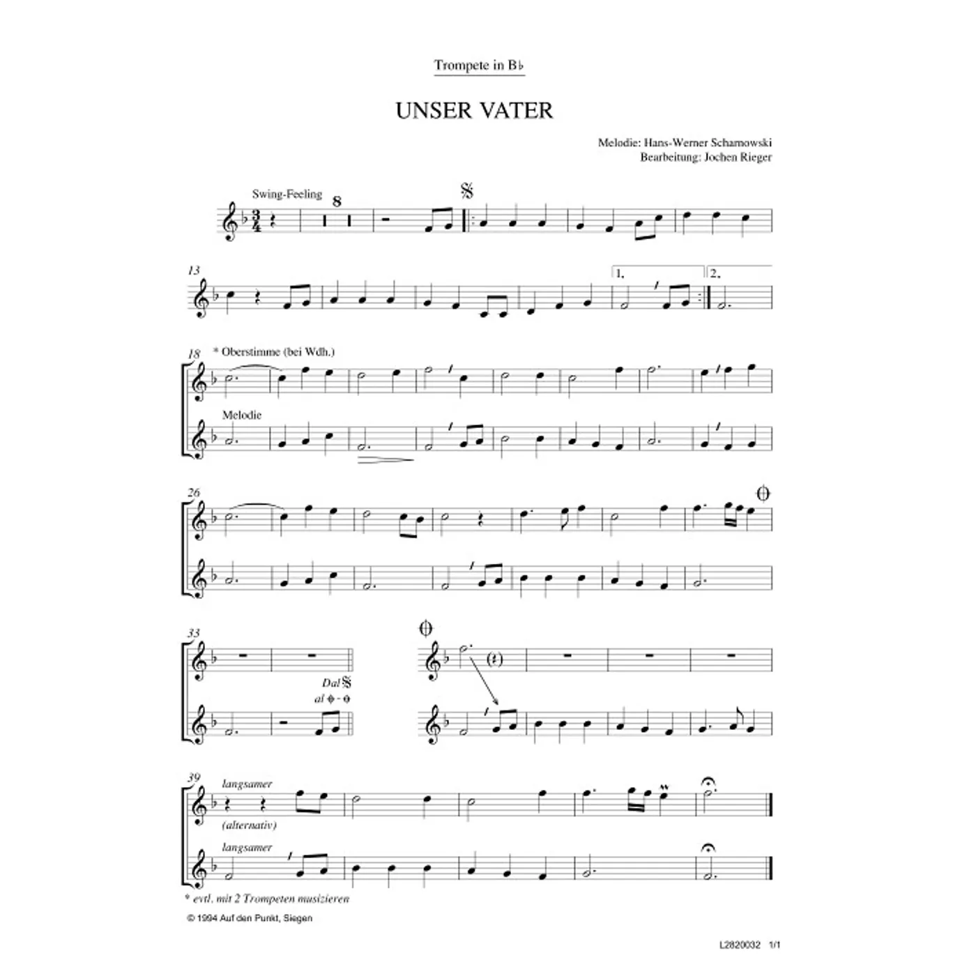 Unser Vater (Trompete in B ) (diese Variante haben Sie gerade ausgewählt) Hans Werner Scharnowski (Komposition), Christoph Zehendner (Text), Jochen Rieger (Bearbeiter) |