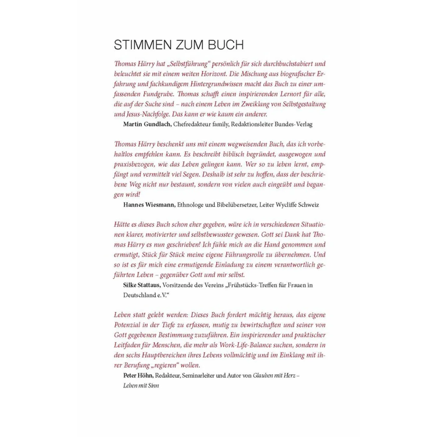 Thomas Härry schreibt nicht umsonst, dass sich selbst führen eine Königsdisziplin ist. Wie reif muss ich sein? Werde ich jemals reif genug sein? Will Gott das überhaupt? Das sind meine Fragen gleich zu Anfang des Buches gewesen.