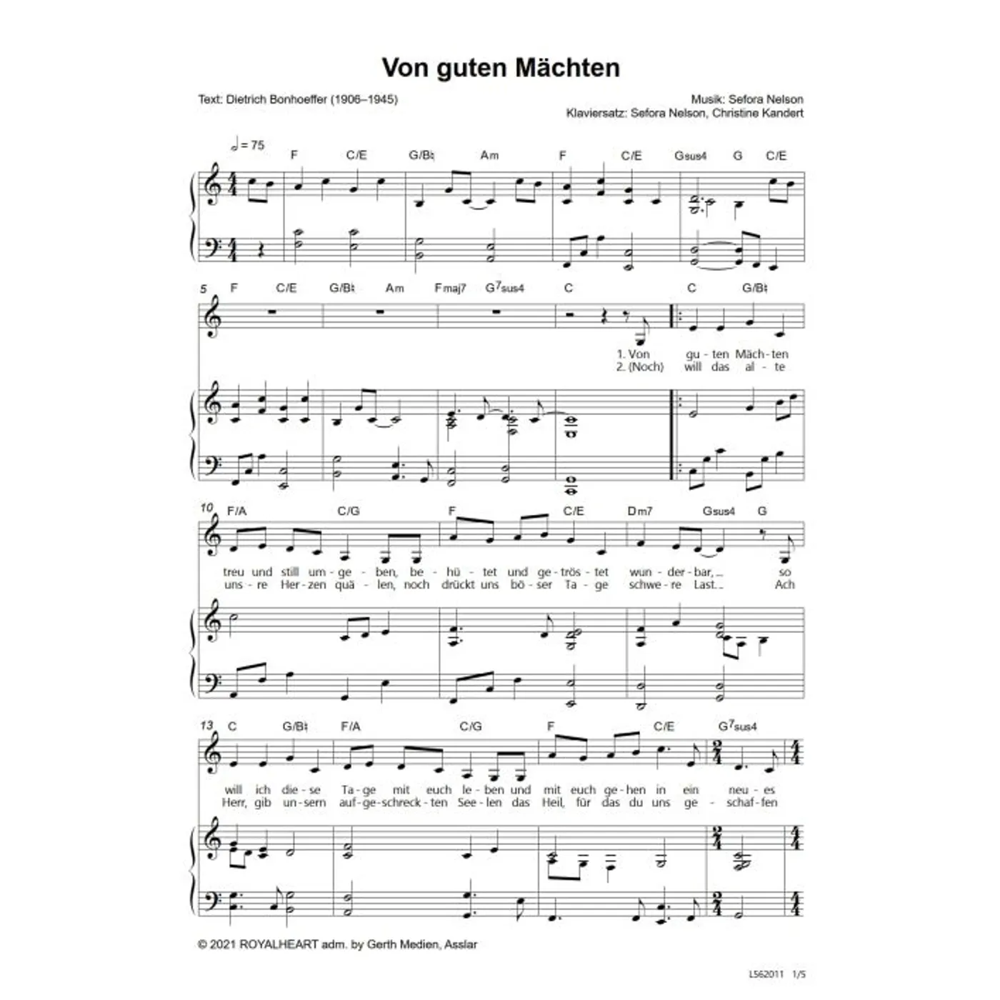 Von guten Mächten (einstimmig, mit Akkorden, gis-moll (#####)-Moll) Sefora Nelson (Klaviersatz) | einstimmig, mit Akkorden, gis-moll (#####)-Moll | 1,50 € |