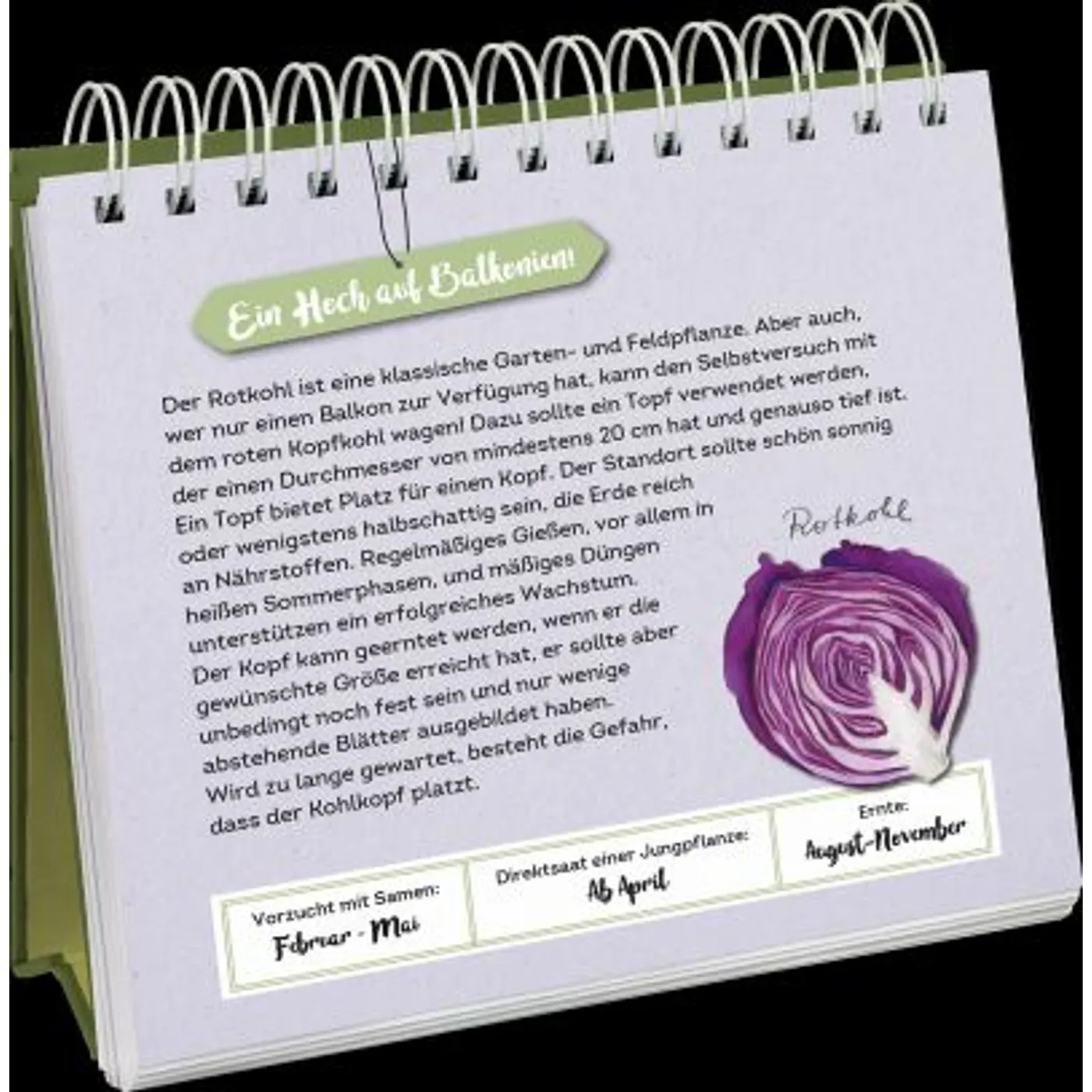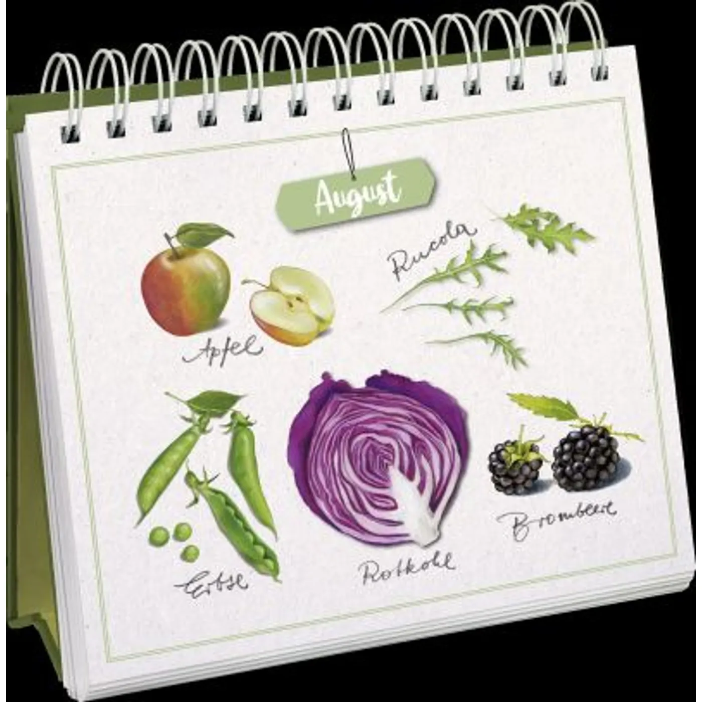 Regional und saisonal einkaufen mit dem praktischen Saisonkalender zum Aufstellen: Für jeden Monat zeigt der Aufstellkalender die Obst- und Gemüse-Sorten, die in Deutschland frisch geerntet oder gelagert werden. Außerdem enthält der Tischkalender zahlreiche Tipps und Rezepte zu Aussaat, Pflege, Ernte und Verarbeitung von Obst und Gemüse im eigenen Garten oder auf dem Balkon.
