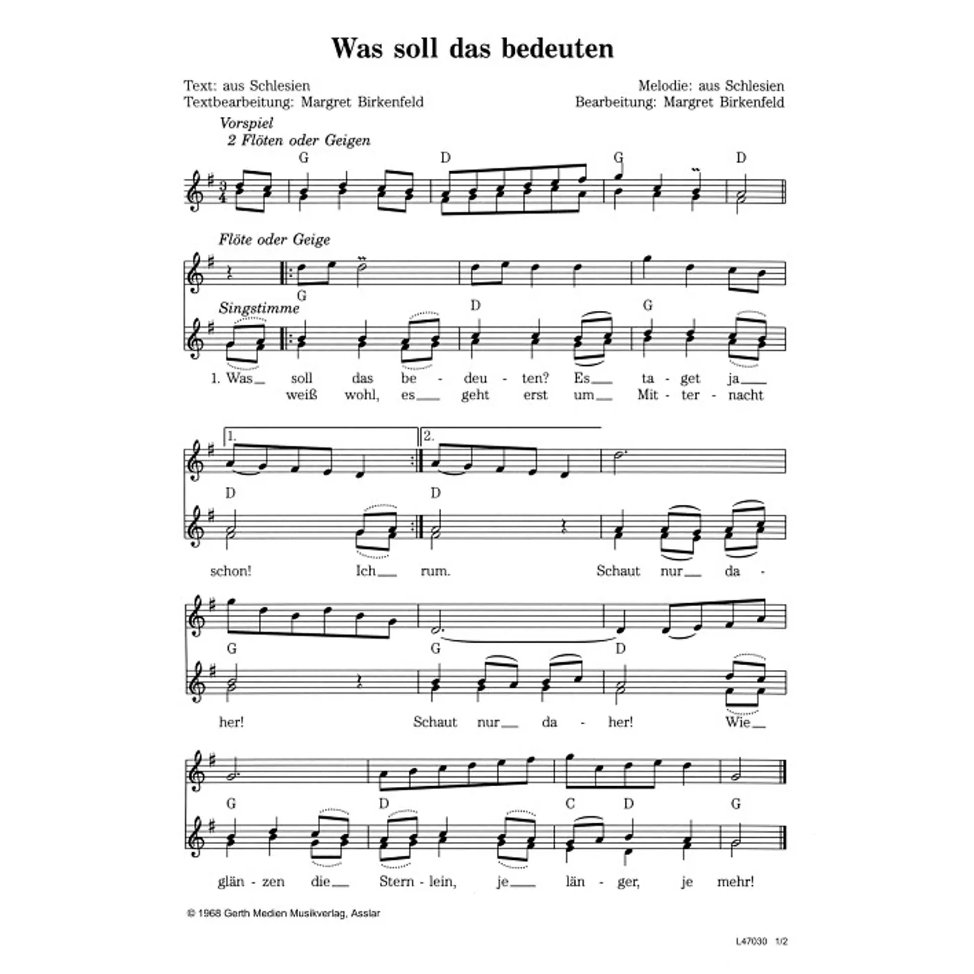 Was soll das bedeuten (diese Variante haben Sie gerade ausgewählt) (traditionell, Kinderchor, mit Akkorden, zweistimmig, G-Dur) Margret Birkenfeld (Chorsatz) |