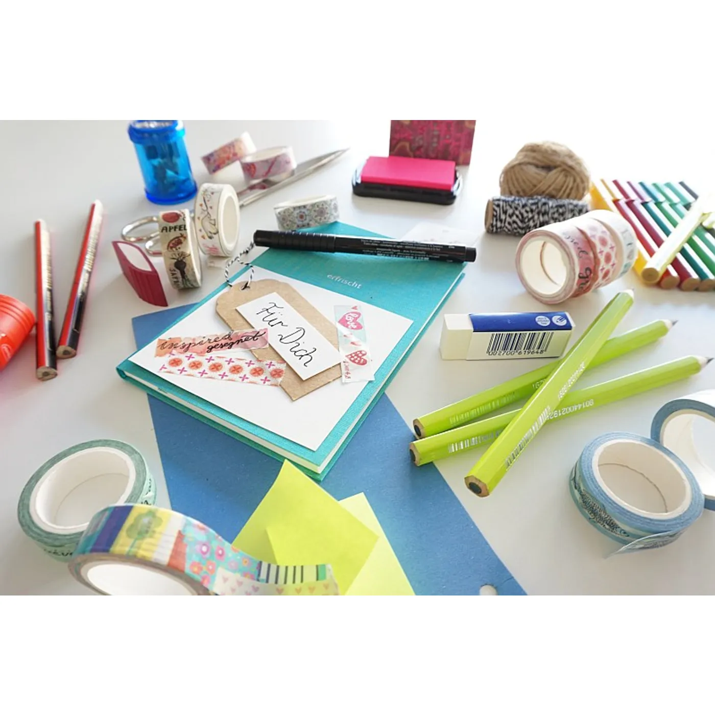Das Washi- oder Klebe-Tape gibt DIY-Projekten ein individuelles Aussehen - wie gemacht für originell verpackte Geschenke, Glückwunsch- oder Einladungskarten zu Hochzeit oder Erstkommunion, Briefe, Postkarten, Notizbücher uvm. Das Tape eignet sich auch bestens zum Bible Art Journaling, für Bullet Journals und Scrapbooks, zum Verschönern von Kalendern und Fotoalben.