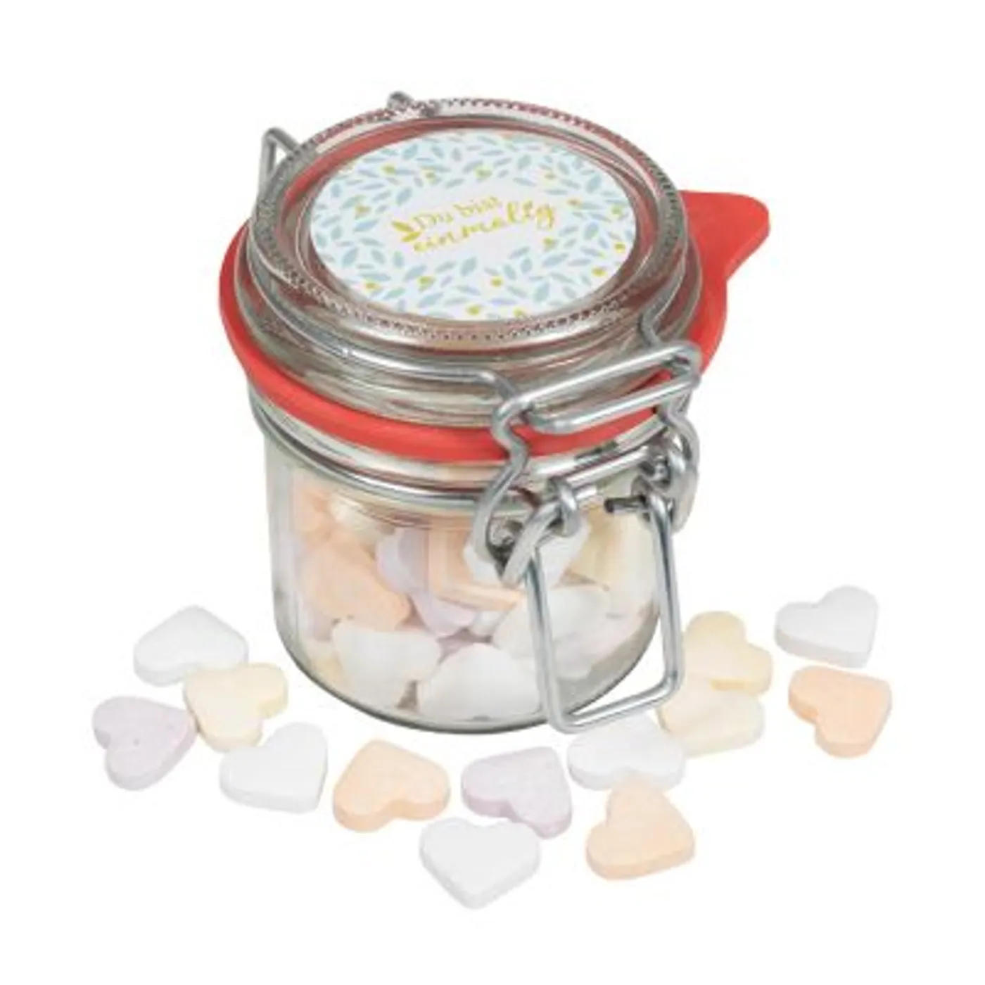 Weckglas "Du bist einmalig" , kleines Weckgläschen gefüllt mit ca. 75 gr. Fruchtherzen.