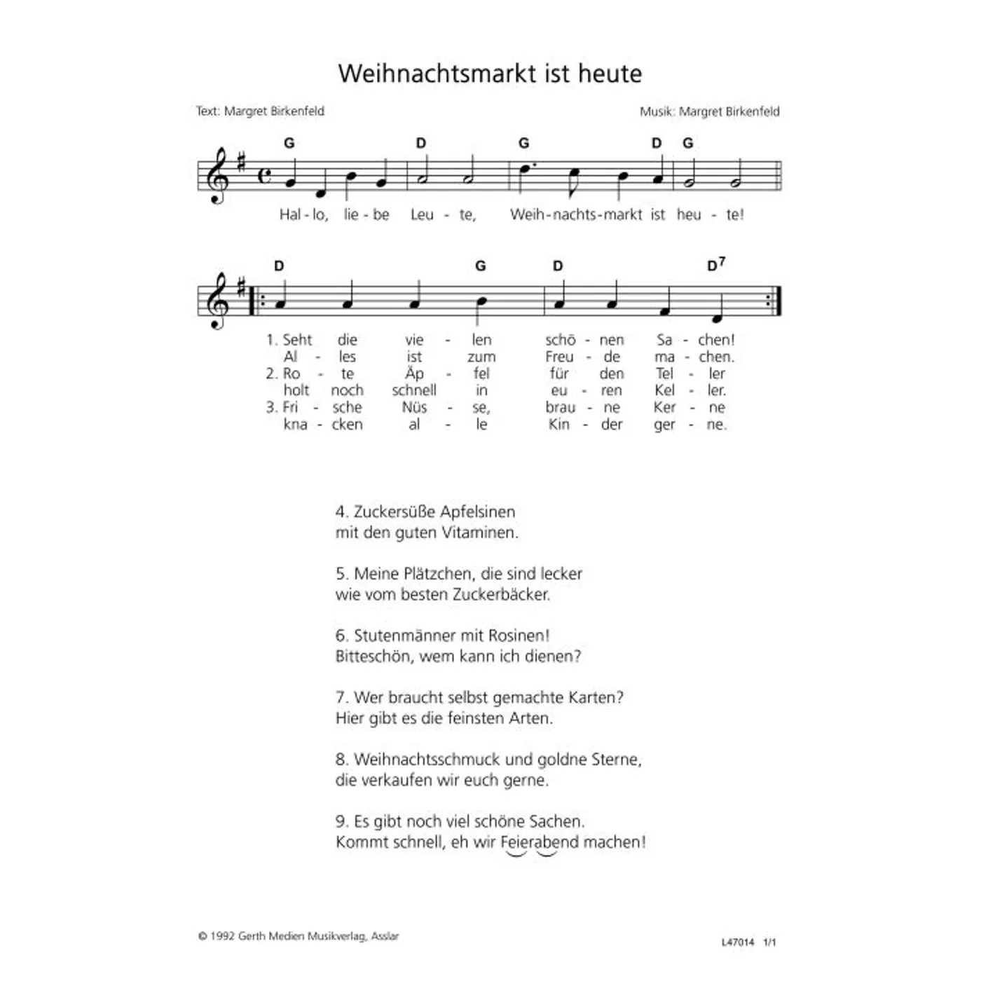 Weihnachtsmarkt ist heute (diese Variante haben Sie gerade ausgewählt) (einstimmig, mit Akkorden, G-Dur) Margret Birkenfeld (Komposition, Text) |