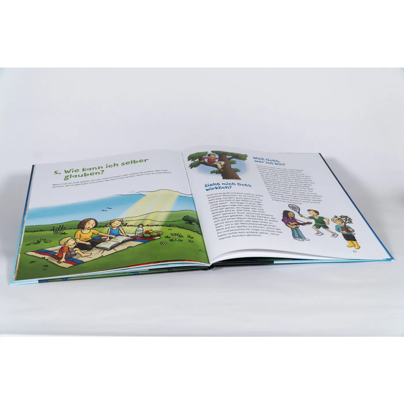 Die einzelnen Kapitel sind klar gegliedert und behandeln verschiedene Fragen, die Kinder oftmals stellen – z. B. „Wie sieht Gott aus?“, „Wer ist Jesus?“ oder „Was bedeutet Glauben?“. Damit ist das Buch ideal, um gezielt auf die Fragen des Kindes einzugehen.