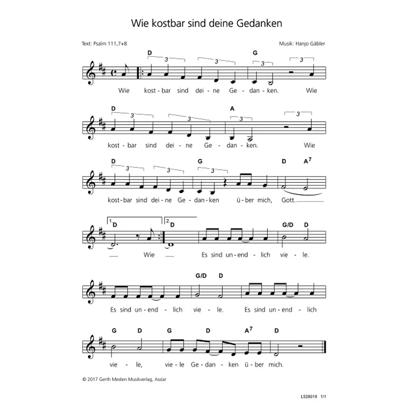 Wie kostbar sind deine Gedanken (diese Variante haben Sie gerade ausgewählt) (einstimmig, mit Akkorden, D-Dur) Hanjo Gäbler (Komposition) |