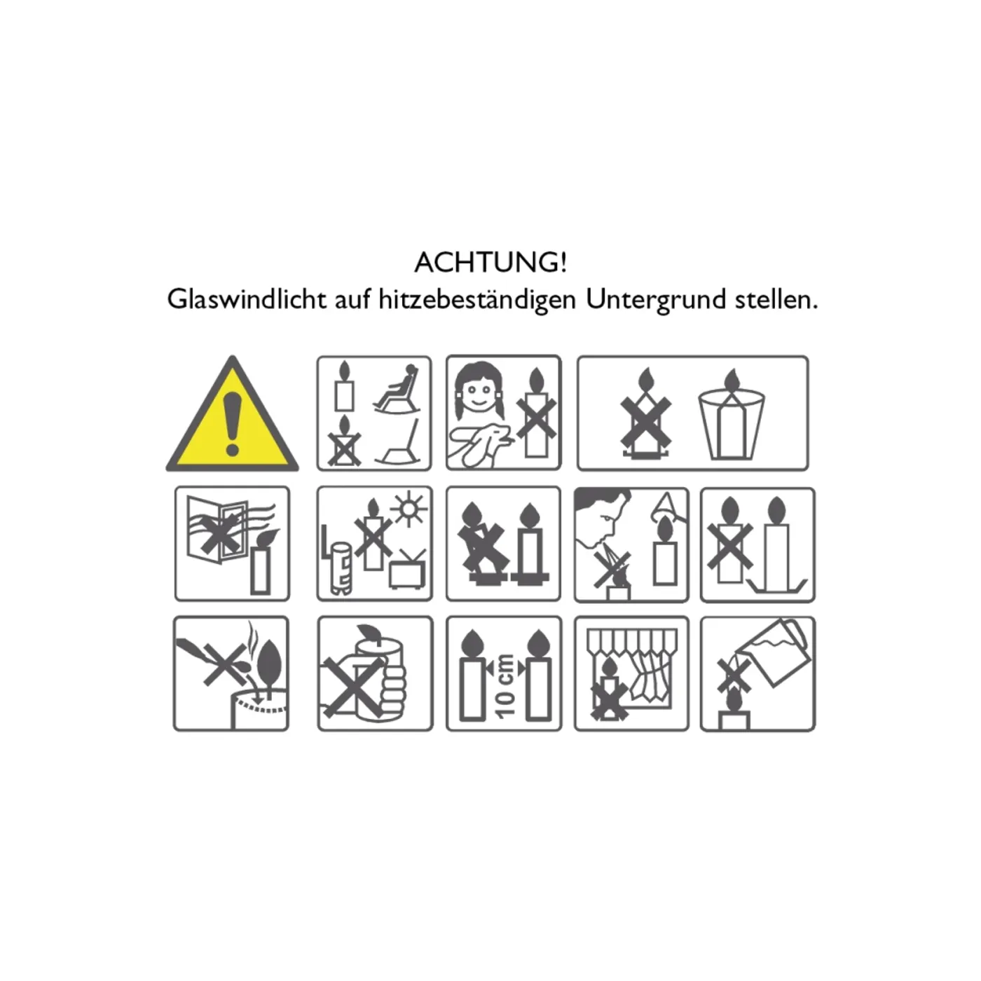 Warnhinweis: Achtung! Glaswindlicht auf hitzebeständigen Hintergrund stellen.