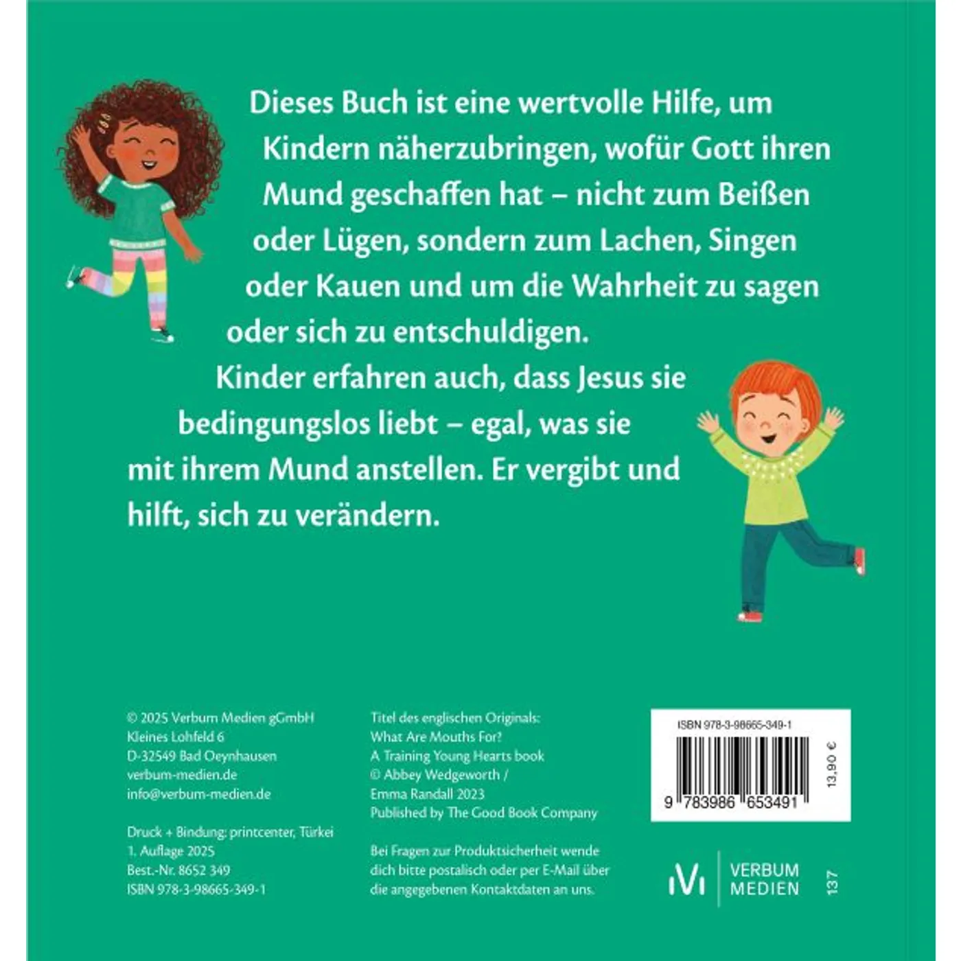 Dieses Buch ist eine wertvolle Hilfe, um Kindern näherzubringen, wofür Gott ihren Mund geschaffen hat – nicht zum Beißen oder Lügen, sondern zum Lachen, Singen oder Kauen und um die Wahrheit zu sagen oder sich zu entschuldigen.