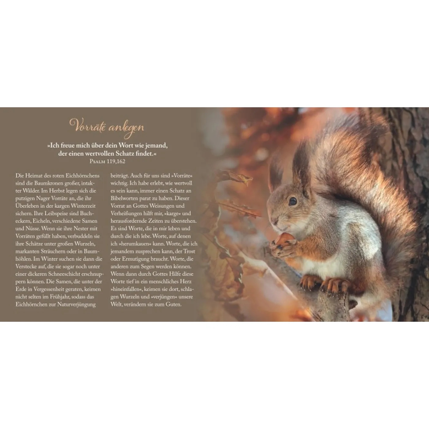 Unsere heimische Tier- und Pflanzenwelt ist in ihrer Vielfalt und Einzigartigkeit wundervoll von Gott geschaffen. In jedem Geschöpf finden sich Eigenarten und Besonderheiten, durch die der Schöpfer zu uns sprechen möchte. In sieben kurzen geistlichen Impulsen, denen jeweils ein Bibelvers vorausgeht, wird ein spezielles Charakteristikum eines Tieres oder einer Pflanze vorgestellt, das uns in unserem Leben und Glauben inspirieren kann. Eine Einladung, über das Geschenk der Schöpfung und des eigenen Lebens nachzudenken.